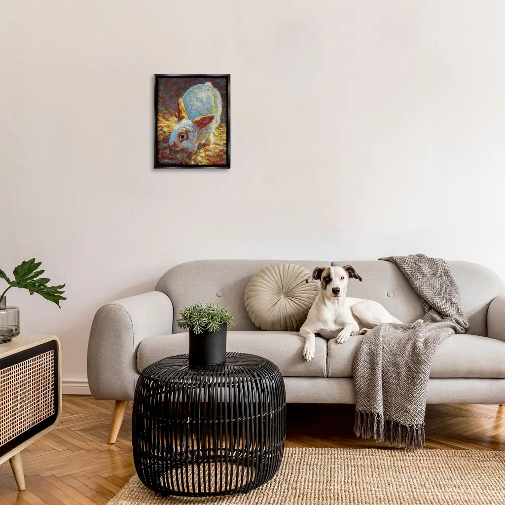Elevate your home or office to the next level with Stupell Framed Floating Canvas Wall Art. Our premium hand-stretched canvas is mounted securely into a sturdy lightweight frame. The museum-style gap between the wrapped canvas and the box frame gives the illusion of floating artwork. Stupell Wall Art is made in the USA.Features: Dimensions: 17 x 1.7 x 21 Frame, 16 x 1.5 x 20 Canvas ArtFloating Frame Canvas Products are available in sizes 17"x21" and 25"x31". All Floating Frame Canvas Products have a 1.7" Depth.Wall Art is Ready to Hang with Hardware Free Hanging. No Installation required. For Easy Set Up Lean or Layer Artwork on Shelf or Against Wall. Artwork is Permently Fixed into the Frame.Our elevated 1.7" Thick Floating Frame is the perfect complement to our canvas style Wall Art. We use only the highest quality inks in house with industry leading printing solutions. Canvas is hand stretched over a durable wood foundation and then mounted securly into a Modern Box Frame. Made in the USA.Artwork Relates To: Painting, Animal, Mammal, Rabbit, Bunny, Abstract, Traditional, Nature, PointillismDesign by Rita Kirkman