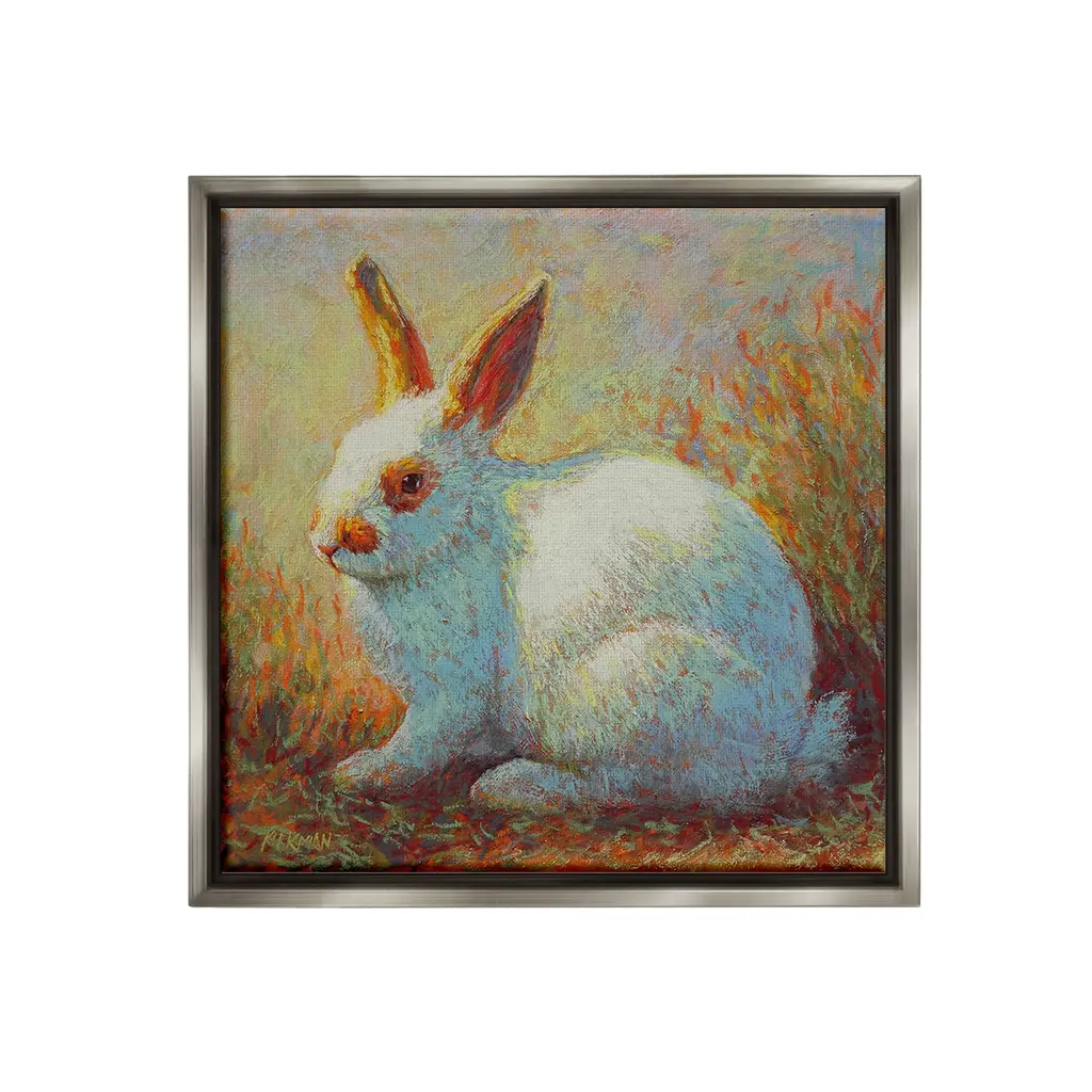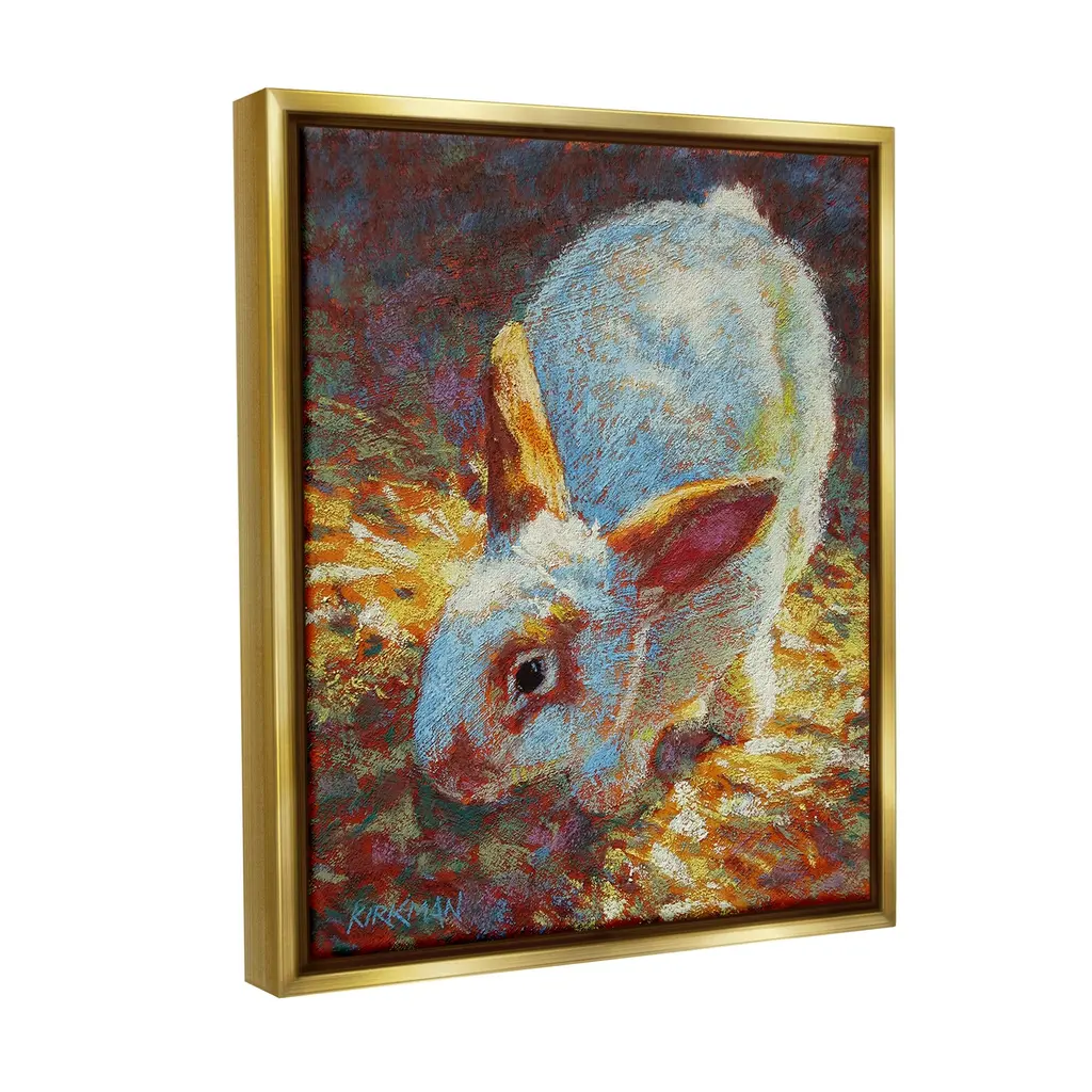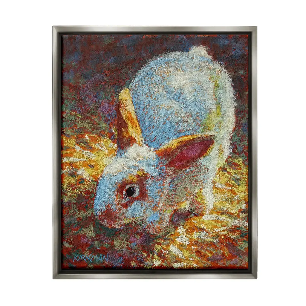 Elevate your home or office to the next level with Stupell Framed Floating Canvas Wall Art. Our premium hand-stretched canvas is mounted securely into a sturdy lightweight frame. The museum-style gap between the wrapped canvas and the box frame gives the illusion of floating artwork. Stupell Wall Art is made in the USA.Features: Dimensions: 17 x 1.7 x 21 Frame, 16 x 1.5 x 20 Canvas ArtFloating Frame Canvas Products are available in sizes 17"x21" and 25"x31". All Floating Frame Canvas Products have a 1.7" Depth.Wall Art is Ready to Hang with Hardware Free Hanging. No Installation required. For Easy Set Up Lean or Layer Artwork on Shelf or Against Wall. Artwork is Permently Fixed into the Frame.Our elevated 1.7" Thick Floating Frame is the perfect complement to our canvas style Wall Art. We use only the highest quality inks in house with industry leading printing solutions. Canvas is hand stretched over a durable wood foundation and then mounted securly into a Modern Box Frame. Made in the USA.Artwork Relates To: Painting, Animal, Mammal, Rabbit, Bunny, Abstract, Traditional, Nature, PointillismDesign by Rita Kirkman