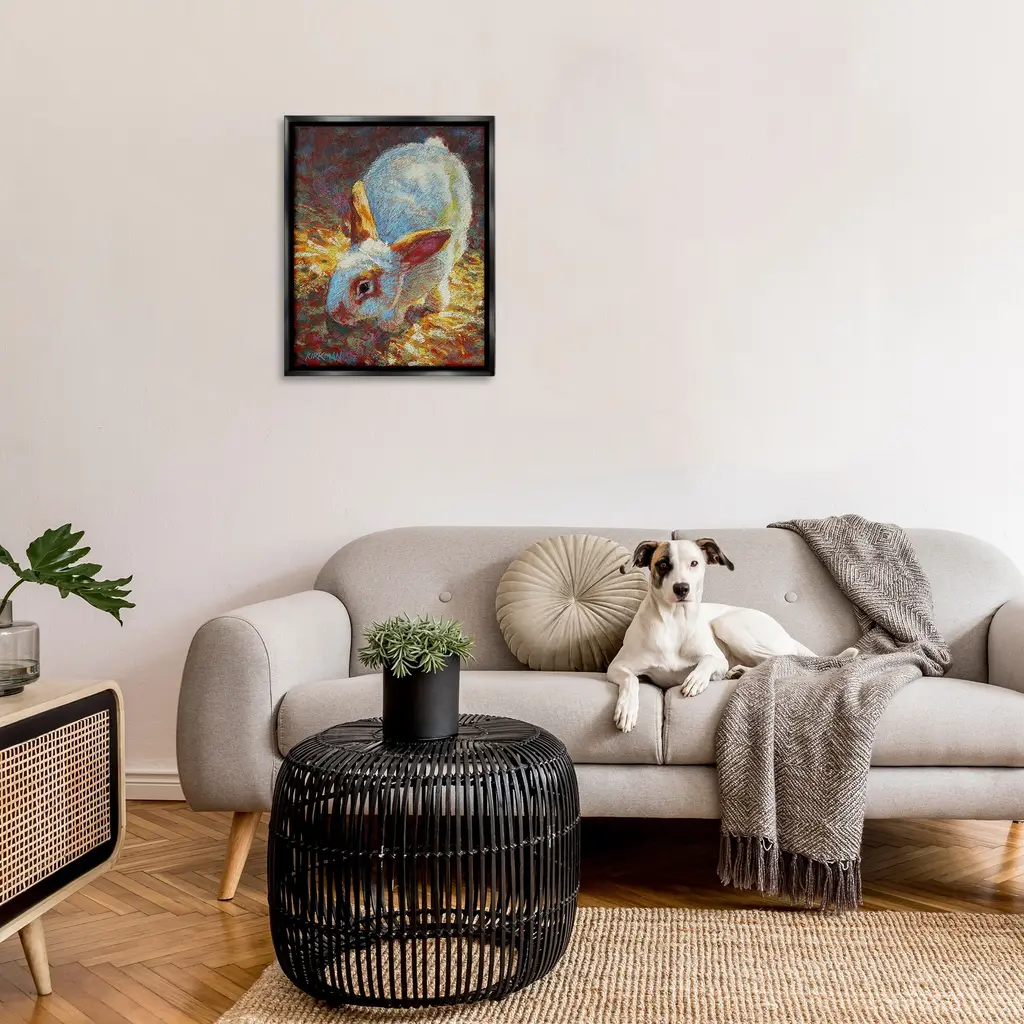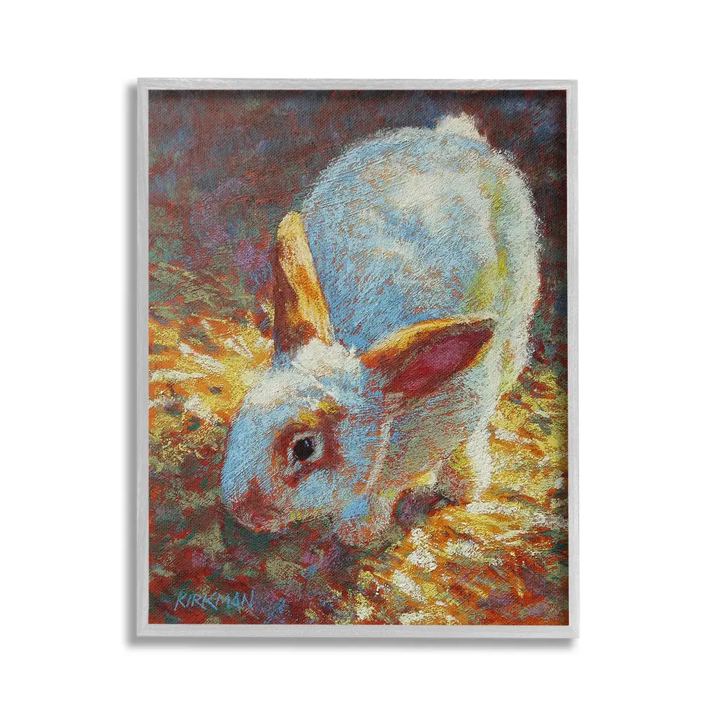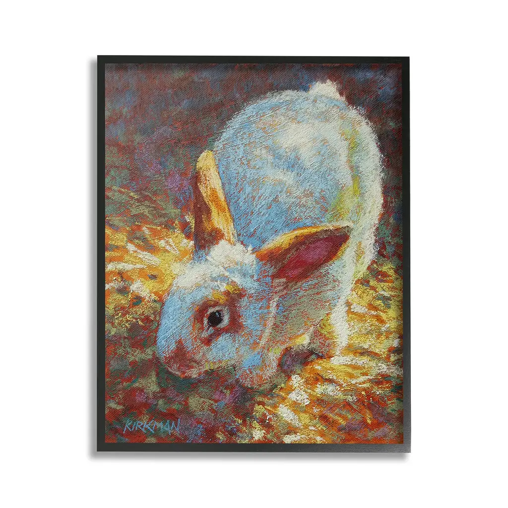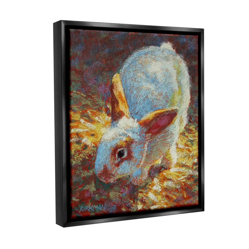 Elevate your home or office to the next level with Stupell Framed Floating Canvas Wall Art. Our premium hand-stretched canvas is mounted securely into a sturdy lightweight frame. The museum-style gap between the wrapped canvas and the box frame gives the illusion of floating artwork. Stupell Wall Art is made in the USA.Features: Dimensions: 17 x 1.7 x 21 Frame, 16 x 1.5 x 20 Canvas ArtFloating Frame Canvas Products are available in sizes 17"x21" and 25"x31". All Floating Frame Canvas Products have a 1.7" Depth.Wall Art is Ready to Hang with Hardware Free Hanging. No Installation required. For Easy Set Up Lean or Layer Artwork on Shelf or Against Wall. Artwork is Permently Fixed into the Frame.Our elevated 1.7" Thick Floating Frame is the perfect complement to our canvas style Wall Art. We use only the highest quality inks in house with industry leading printing solutions. Canvas is hand stretched over a durable wood foundation and then mounted securly into a Modern Box Frame. Made in the USA.Artwork Relates To: Painting, Animal, Mammal, Rabbit, Bunny, Abstract, Traditional, Nature, PointillismDesign by Rita Kirkman