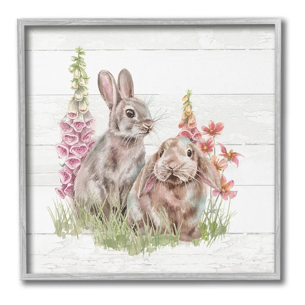 Add dimension to any room with our textured Framed Giclee Artwork. Our framed artwork is securely mounted into a 1.5-inch thick wood grain frame and ready to hang. Frames are available in three alluring styles: black, gray farmhouse and white. In addition, you should check out our oversized options if you want a statement piece. Stupell Wall Art is made in the USA.Features: Dimensions: 12 x 1.5 x 12 FramedFramed Giclee Product Sizes Include 12"x12", 17"x17", and 24"x24". Framed Giclee Products have a 1.5" Depth. Wall Art is Ready to Hang with Hardware Free Hanging. No installation required. For Easy Set Up Lean or Layer Artwork on Shelf or Against Wall.Our giclée prints are carefully mounted on a durable MDF backing, and then perfectly finished in a 1.5 inch thick woodgrain frame. Mounted frame colors include black, gray farmhouse and white. Made In USA.Artwork Relates To: Animal, Hare, Mammal, Pet, Rabbit, Bunny, Flower, Plant, Floral, Rustic, CountryDesign by Courtney Morgenstern