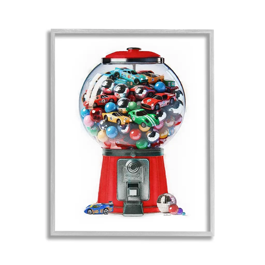 Add dimension to any room with our textured Framed Giclee Artwork. Our framed artwork is securely mounted into a 1.5-inch thick wood grain frame and ready to hang. Frames are available in three alluring styles: black, gray farmhouse and white. In addition, you should check out our oversized options if you want a statement piece. Stupell Wall Art is made in the USA.Features: Dimensions: 11 x 1.5 x 14 FramedFramed Giclee Products are available in the sizes 11"x14", 16"x20" or 24"x30". All Framed Giclee Products have a 1.5" Depth. Wall Art is Ready to Hang with Hardware Free Hanging. No installation required. For Easy Set Up Lean or Layer Artwork on Shelf or Against Wall.Our giclée prints are carefully mounted on a durable MDF backing, and then perfectly finished in a 1.5 inch thick woodgrain frame. Mounted frame colors include black, gray farmhouse and white. Made In USA.Artwork Relates To: Gumball Machine, Candy, Sweets, Vintage, Retro, Car, Race CarDesign by Amanda Greenwood
