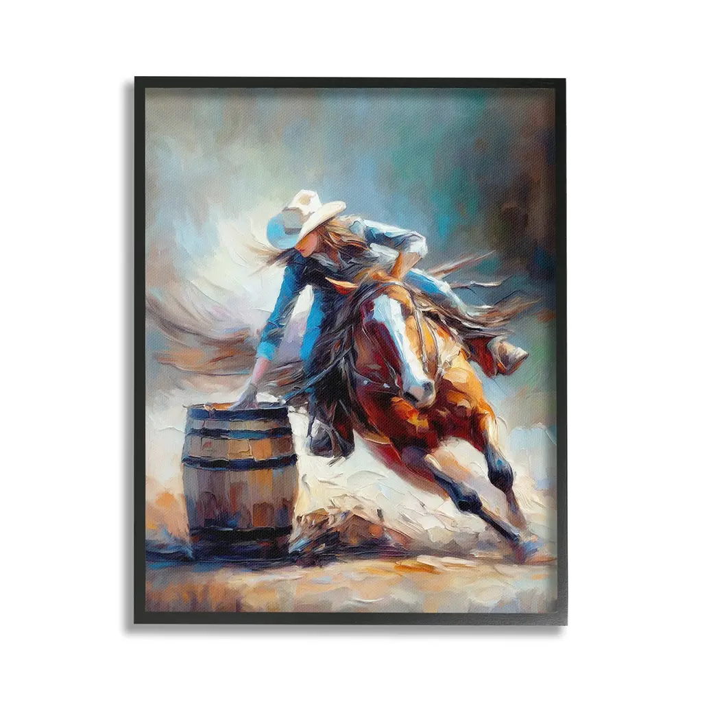 Stupell Racing Rodeo Cowgirl Framed Floater Canvas Wall Art Design By Ramona Murdock - 17 X 21 - Black