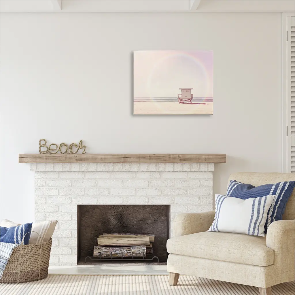We create our stretched canvas to the highest standards. Using only the highest quality inks and canvas on Mimaki printers, we hand-cut and stretch each piece over a 1.5-inch thick wooden frame for hanging. As a result, the art comes ready to hang on the sturdy ledge with no installation required. Stupell Wall Art is made in the USA.Features: Dimensions: 20 x 1.5 x 16 InchesStretched Canvas Sizes Include Standard: 20 x 1.5 x 16 Large: 30 x 1.5 x 20 X-Large: 40 x 1.5 x 30 Oversized: 48 x 1.5 x 36Wall Art is Ready to Hang with Hardware Free Hanging. No installation required. For Easy Set Up Lean or Layer Artwork on Shelf or Against Wall.Our stretched canvas is created with the highest standards. We use only the highest quality inks and canvas on our in house Mimaki printers, and then hand cut and stretch each piece over a 1.5 inch thick wooden frame for hanging. Made In USA.Artwork Relates To: Sky, Beach, Coast, Sea, Shoreline, Water, Scenery, Horizon, Summer, Waterfront, Rural, Rainbow, Landscape, Lifeguard HutDesign by Sisi and Seb