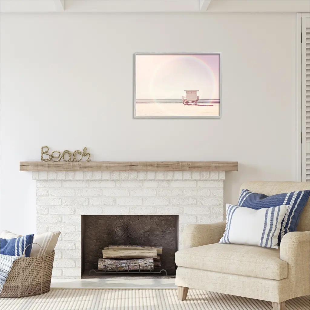 Add dimension to any room with our textured Framed Giclee Artwork. Our framed artwork is securely mounted into a 1.5-inch thick wood grain frame and ready to hang. Frames are available in three alluring styles: black, gray farmhouse and white. In addition, you should check out our oversized options if you want a statement piece. Stupell Wall Art is made in the USA.Features: Dimensions: 14 x 1.5 x 11 FramedFramed Giclee Sizes Include Standard: 14 x 1.5 x 11 Large: 20 x 1.5 x 16 Oversized: 30 x 1.5 x 24Wall Art is Ready to Hang with Hardware Free Hanging. No installation required. For Easy Set Up Lean or Layer Artwork on Shelf or Against Wall.Our giclée prints are carefully mounted on a durable MDF backing, and then perfectly finished in a 1.5 inch thick woodgrain frame. Mounted frame colors include black, gray farmhouse and white. Made In USA.Artwork Relates To: Sky, Beach, Coast, Sea, Shoreline, Water, Scenery, Horizon, Summer, Waterfront, Rural, Rainbow, Landscape, Lifeguard HutDesign by Sisi and Seb