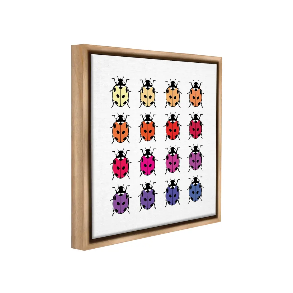 Elevate your home or office to the next level with Stupell Framed Floating Canvas Wall Art. Our premium hand-stretched canvas is mounted securely into a sturdy lightweight frame. The museum-style gap between the wrapped canvas and the box frame gives the illusion of floating artwork. Stupell Wall Art is made in the USA.Features: Dimensions: 18 x 1.7 x 18 Frame, 17 x 1.5 x 17 Canvas ArtFloating Frame Canvas Products are available in sizes 18"x18" and 25"x25". All Floating Frame Canvas Products have a 1.7" Depth.Wall Art is Ready to Hang with Hardware Free Hanging. No Installation required. For Easy Set Up Lean or Layer Artwork on Shelf or Against Wall. Artwork is Permently Fixed into the Frame.Our elevated 1.7" Thick Floating Frame is the perfect complement to our canvas style Wall Art. We use only the highest quality inks in house with industry leading printing solutions. Canvas is hand stretched over a durable wood foundation and then mounted securly into a Modern Box Frame. Made in the USA.Artwork Relates To: Animal, Insect, Invertebrate, Bug, Beetle, Ladybug, LadybirdDesign by Martina Pavlova