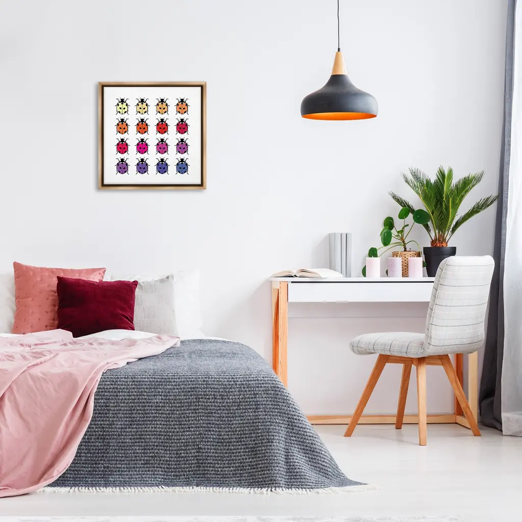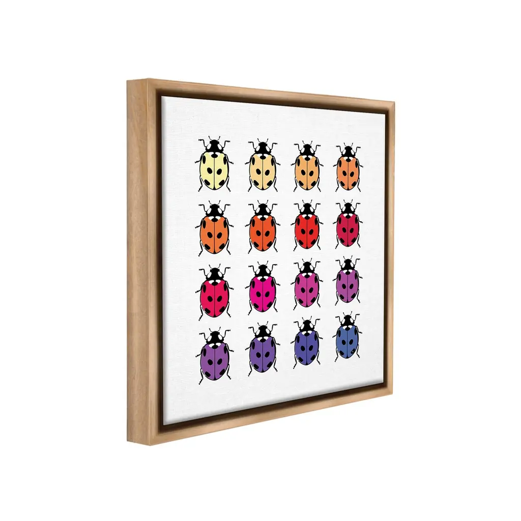 Elevate your home or office to the next level with Stupell Framed Floating Canvas Wall Art. Our premium hand-stretched canvas is mounted securely into a sturdy lightweight frame. The museum-style gap between the wrapped canvas and the box frame gives the illusion of floating artwork. Stupell Wall Art is made in the USA.Features: Dimensions: 18 x 1.7 x 18 Frame, 17 x 1.5 x 17 Canvas ArtFloating Frame Canvas Products are available in sizes 18"x18" and 25"x25". All Floating Frame Canvas Products have a 1.7" Depth.Wall Art is Ready to Hang with Hardware Free Hanging. No Installation required. For Easy Set Up Lean or Layer Artwork on Shelf or Against Wall. Artwork is Permently Fixed into the Frame.Our elevated 1.7" Thick Floating Frame is the perfect complement to our canvas style Wall Art. We use only the highest quality inks in house with industry leading printing solutions. Canvas is hand stretched over a durable wood foundation and then mounted securly into a Modern Box Frame. Made in the USA.Artwork Relates To: Animal, Insect, Invertebrate, Bug, Beetle, Ladybug, LadybirdDesign by Martina Pavlova