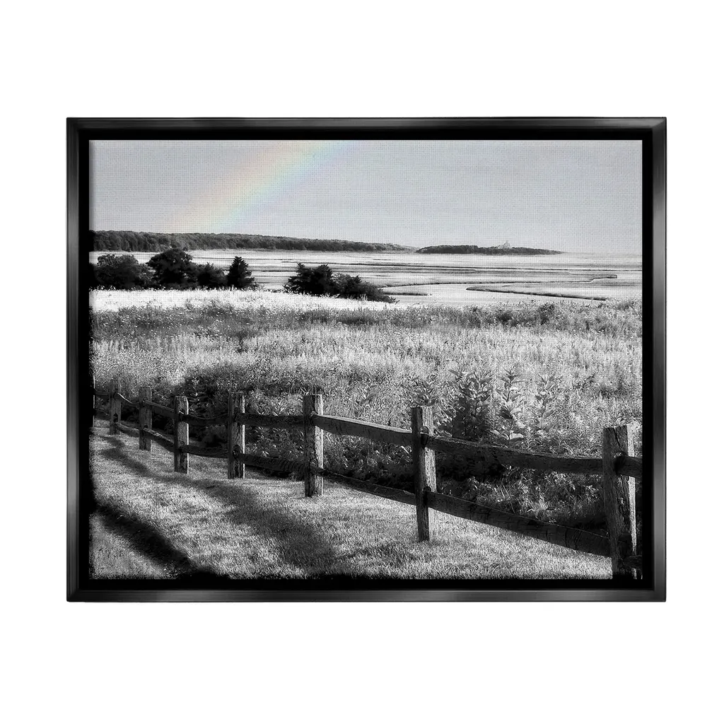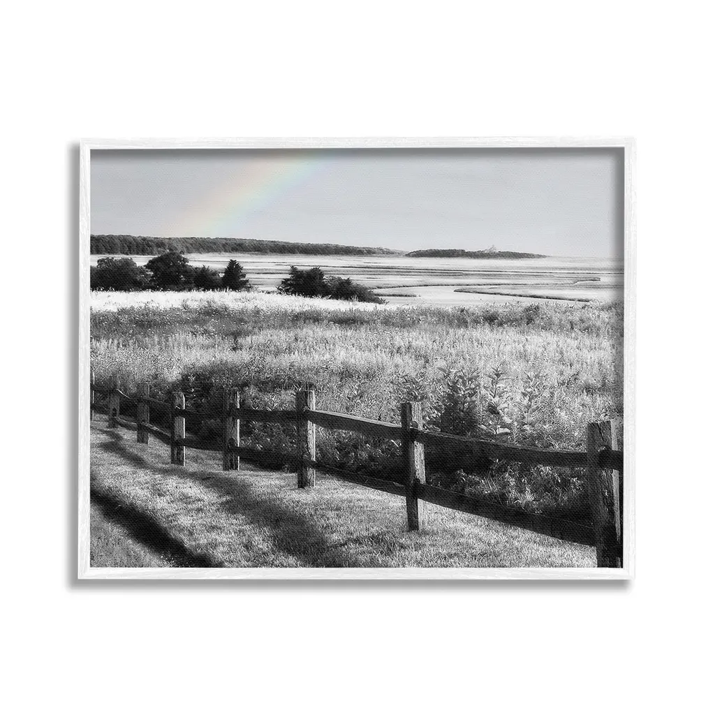 Add dimension to any room with our textured Framed Giclee Artwork. Our framed artwork is securely mounted into a 1.5-inch thick wood grain frame and ready to hang. Frames are available in three alluring styles: black, gray farmhouse and white. In addition, you should check out our oversized options if you want a statement piece. Stupell Wall Art is made in the USA.Features: Dimensions: 14 x 1.5 x 11 FramedFramed Giclee Products are available in the sizes 14"x11", 20"x16" or 30"x24". All Framed Giclee Products have a 1.5" Depth. Wall Art is Ready to Hang with Hardware Free Hanging. No installation required. For Easy Set Up Lean or Layer Artwork on Shelf or Against Wall.Our giclée prints are carefully mounted on a durable MDF backing, and then perfectly finished in a 1.5 inch thick woodgrain frame. Mounted frame colors include black, gray farmhouse and white. Made In USA.Artwork Relates To: Nature, Sky, Grass, Fence, Scenery, Field, Grassland, Landscape, Countryside, Rural, Rainbow, Water, RiverDesign by GraffiTee Studios