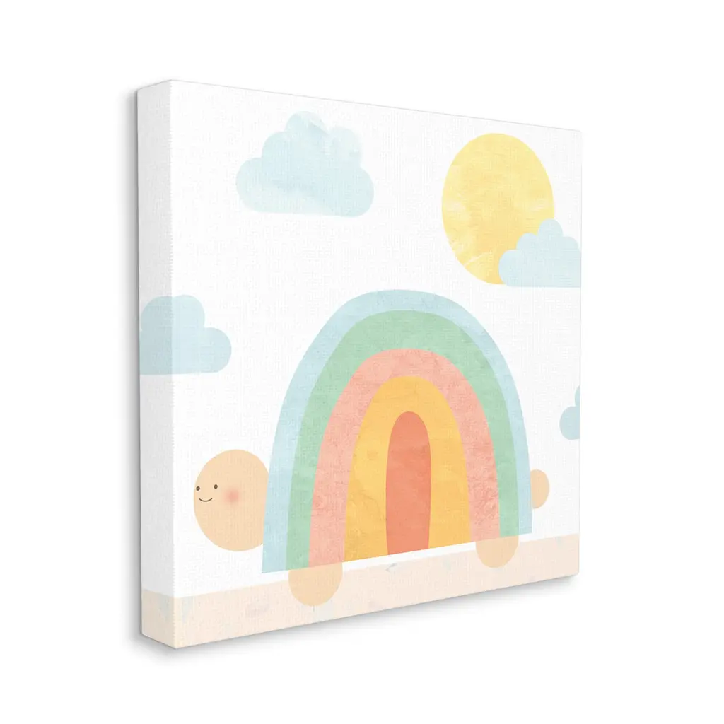 We create our stretched canvas to the highest standards. Using only the highest quality inks and canvas on Mimaki printers, we hand-cut and stretch each piece over a 1.5-inch thick wooden frame for hanging. As a result, the art comes ready to hang on the sturdy ledge with no installation required. Stupell Wall Art is made in the USA.Features: Dimensions: 17 x 1.5 x 17 InchesStretched Canvas Sizes Include Standard: 17 x 1.5 x 17 Large: 24 x 1.5 x 24 X-Large: 30 x 1.5 x 30 Oversized: 36 x 1.5 x 36Wall Art is Ready to Hang - No Installation or Hardware Needed. For Easy Set Up Lean or Layer Artwork on Shelf or Against Wall.Our stretched canvas is created with the highest standards. We use only the highest quality inks and canvas on our in house Mimaki printers, and then hand cut and stretch each piece over a 1.5 inch thick wooden frame for hanging. Made In USA.Artwork Relates To: Animal, Nature, Rainbow, Sky, Arch, Snail, Clouds, SunDesign by Lil' Rue