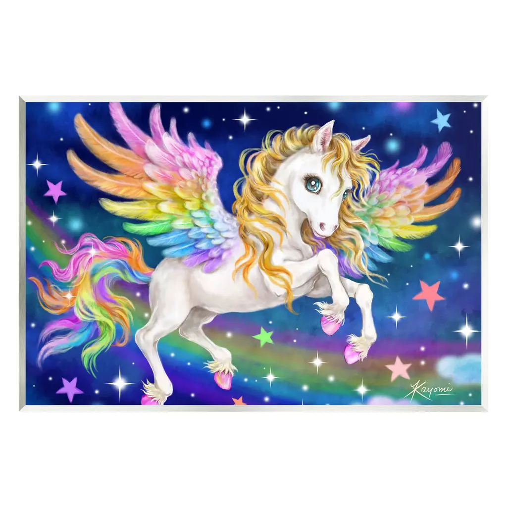 Add dimension to any room with our textured Framed Giclee Artwork. Our framed artwork is securely mounted into a 1.5-inch thick wood grain frame and ready to hang. Frames are available in three alluring styles: black, gray farmhouse and white. In addition, you should check out our oversized options if you want a statement piece. Stupell Wall Art is made in the USA.Features: Dimensions: 14 x 1.5 x 11 FramedFramed Giclee Products are available in the sizes 14"x11", 20"x16" or 30"x24". All Framed Giclee Products have a 1.5" Depth. Wall Art is Ready to Hang with Hardware Free Hanging. No installation required. For Easy Set Up Lean or Layer Artwork on Shelf or Against Wall.Our giclée prints are carefully mounted on a durable MDF backing, and then perfectly finished in a 1.5 inch thick woodgrain frame. Mounted frame colors include black, gray farmhouse and white. Made In USA.Artwork Relates To: Modern, Animal, Horse, Unicorn, Fantasy, Rainbow, Stars, Pattern, CloudsDesign by Kayomi Harai