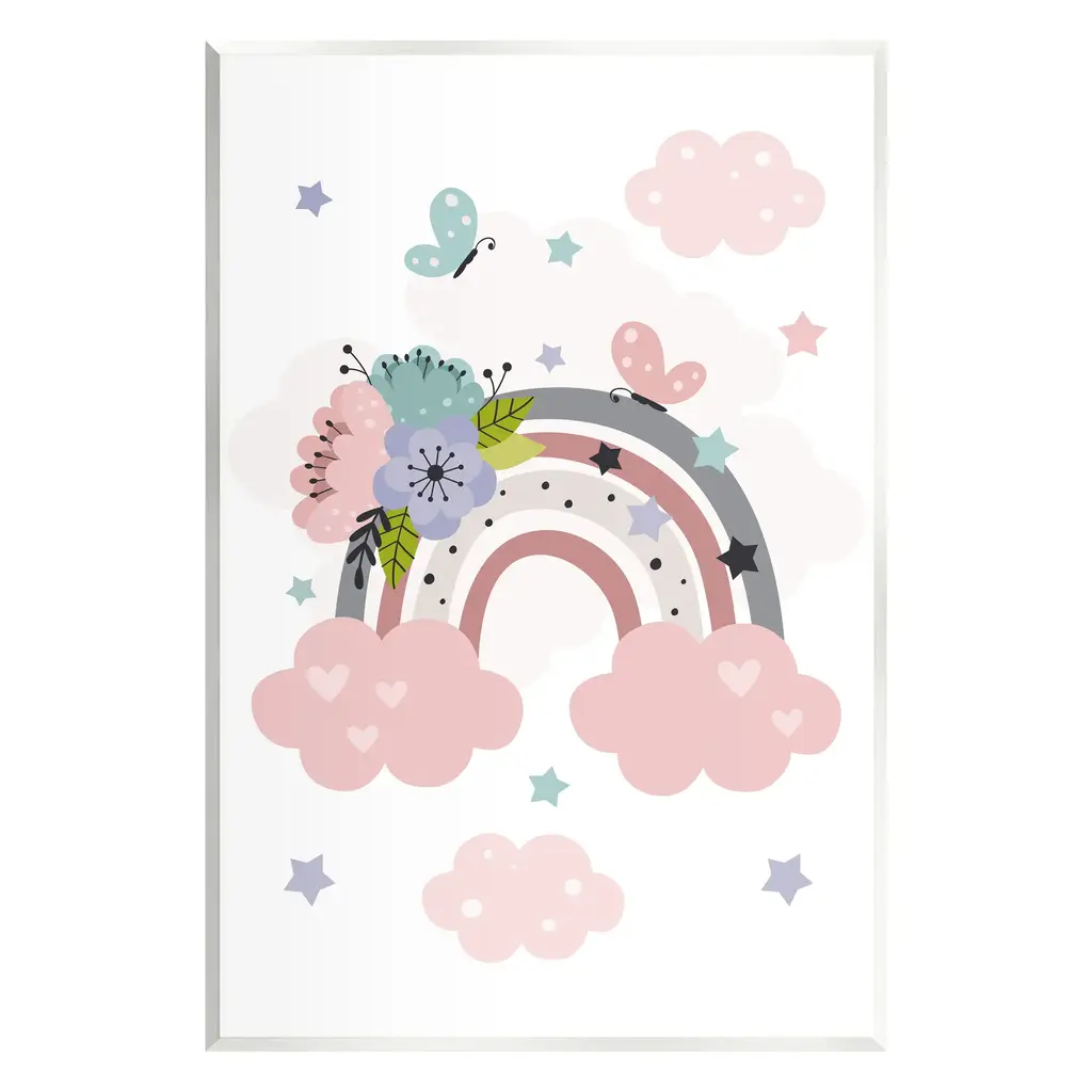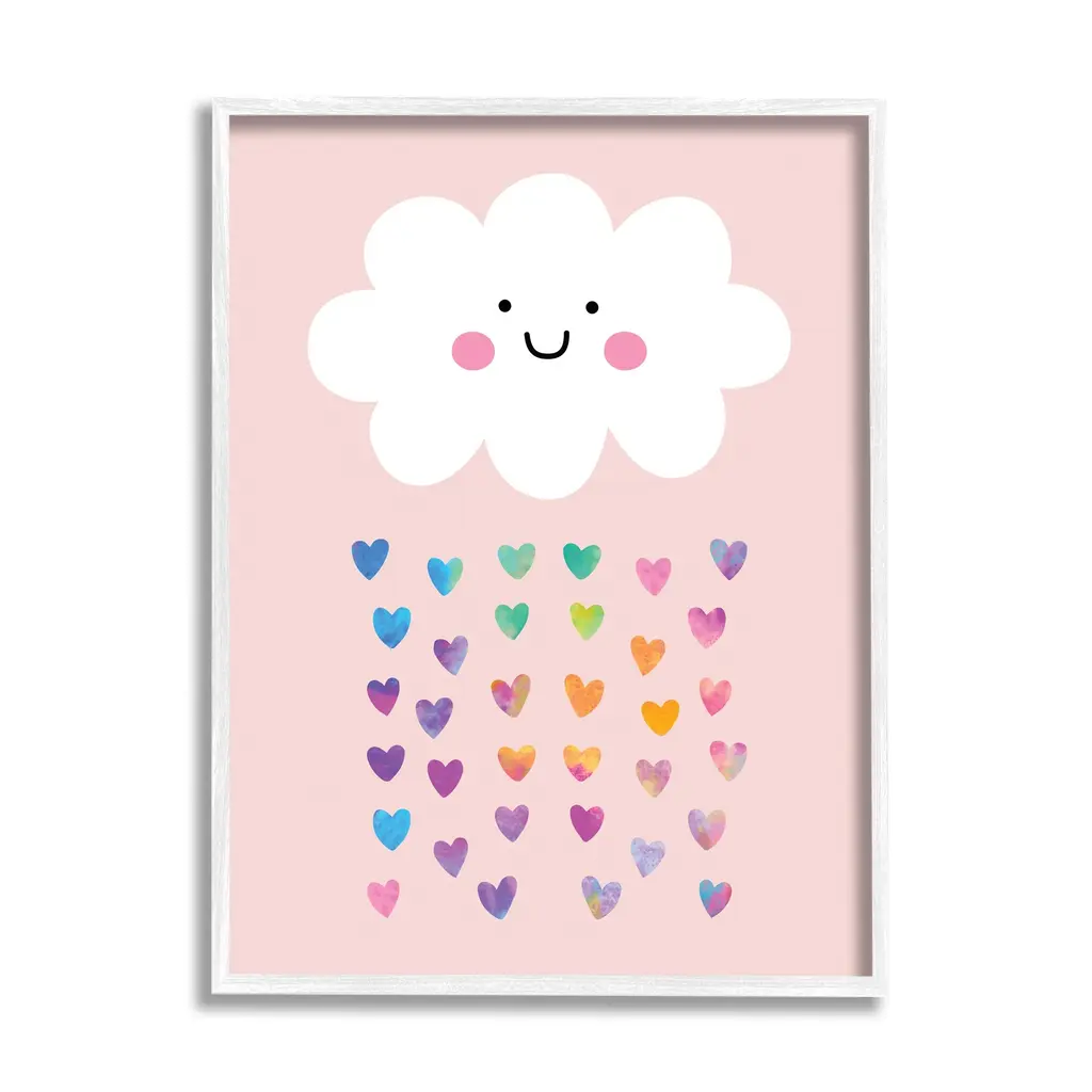 Stupell Raining Rainbow Hearts With Happy Cloud Framed Wall Art - Pink - 24 X 30 - Grey