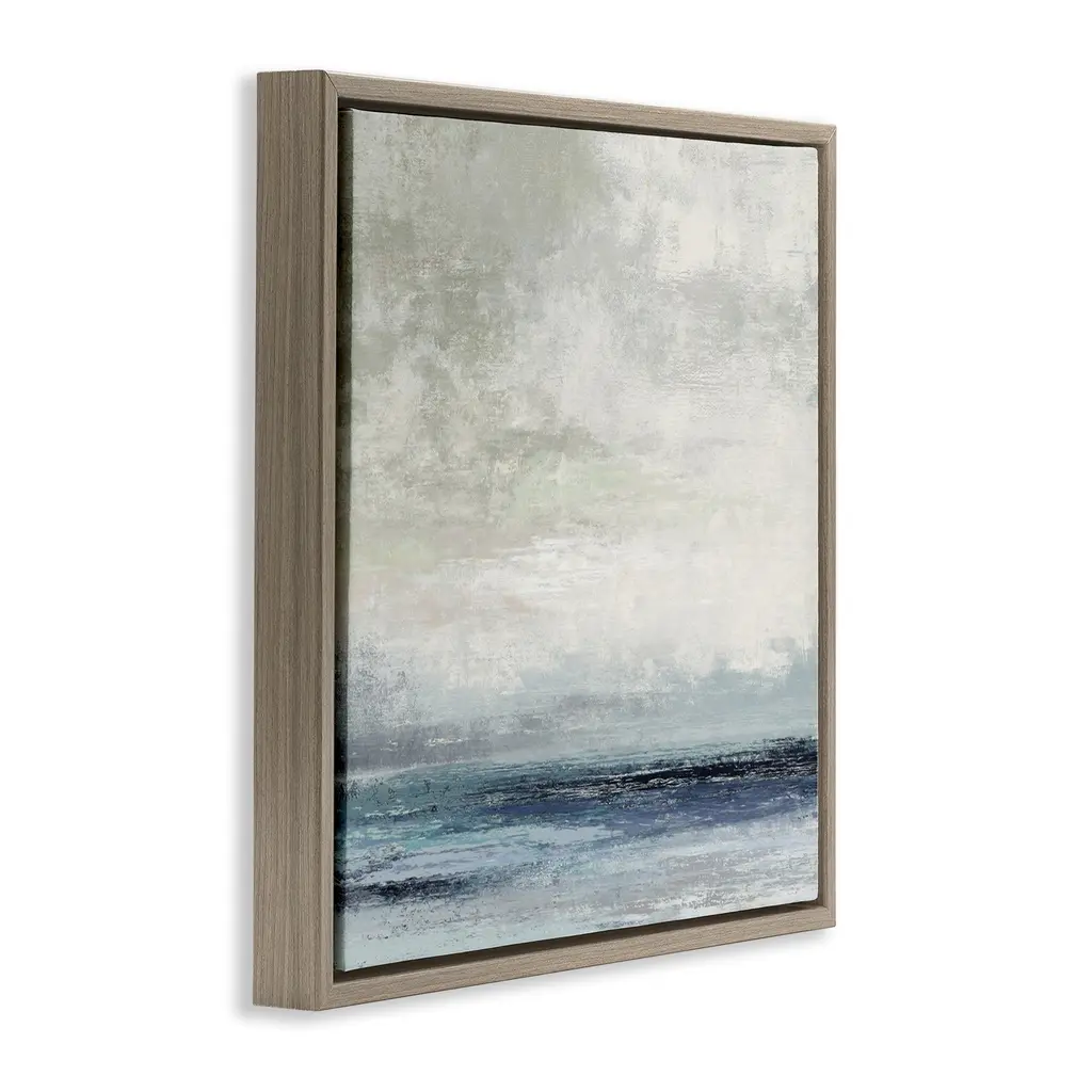 Elevate your home or office to the next level with Stupell Framed Floating Canvas Wall Art. Our premium hand-stretched canvas is mounted securely into a sturdy lightweight frame. The museum-style gap between the wrapped canvas and the box frame gives the illusion of floating artwork. Stupell Wall Art is made in the USA.Features: Dimensions: 18 x 1.7 x 18 Frame, 17 x 1.5 x 17 Canvas ArtFloating Frame Canvas Products are available in sizes 18"x18" and 25"x25". All Floating Frame Canvas Products have a 1.7" Depth.Wall Art is Ready to Hang with Hardware Free Hanging. No Installation required. For Easy Set Up Lean or Layer Artwork on Shelf or Against Wall. Artwork is Permently Fixed into the Frame.Our elevated 1.7" Thick Floating Frame is the perfect complement to our canvas style Wall Art. We use only the highest quality inks in house with industry leading printing solutions. Canvas is hand stretched over a durable wood foundation and then mounted securly into a Modern Box Frame. Made in the USA.Artwork Relates To: Abstract, Landscape, Beach, Nautical, Fog, GreyDesign by Suzanne Nicoll