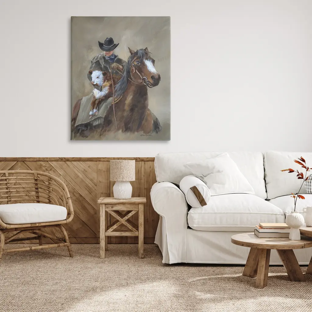Proudly made in the USA, Our stretched canvas is created with the highest standards. We use only the highest quality inks and canvas on our in house Mimaki printers, and then hand cut and stretch each piece over a 1.5 inch thick wooden frame for hanging. The art comes ready to hang with no installation required. Room Type: Living Room, Den, Hallway, Office, Entryway, Study, Dining Room or Bedroom, Guest Room, Studio, Dorm or BoudoirFeatures: Dimensions: 16 x 1.5 x 20 InchesStretched Canvas Sizes Include Standard: 16 x 1.5 x 20 Large: 20 x 1.5 x 30 X-Large: 30 x 1.5 x 40 Oversized: 36 x 1.5 x 48Wall Art is Ready to Hang - No Installation or Hardware Needed. For Easy Set Up Lean or Layer Artwork on Shelf or Against Wall.Our stretched canvas is created with the highest standards. We use only the highest quality inks and canvas on our in house Mimaki printers, and then hand cut and stretch each piece over a 1.5 inch thick wooden frame for hanging. Made In USA.Artwork Relates To: Person, Animal, Horse, Mammal, Cattle, Cowboy, Western, Country, RuralDesign by Pam Britton