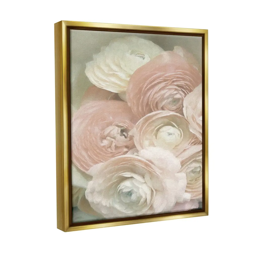 Stupell Ranunculus Blooms Pattern Framed Floater Canvas Wall Art Design By Graffitee Studios - 25 X 31 - Gold