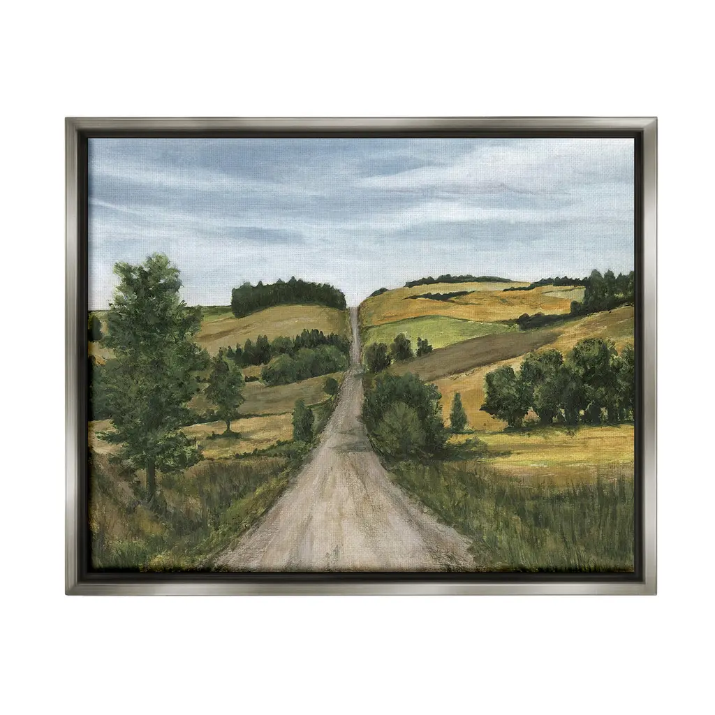 Elevate your home or office to the next level with Stupell Framed Floating Canvas Wall Art. Our premium hand-stretched canvas is mounted securely into a sturdy lightweight frame. The museum-style gap between the wrapped canvas and the box frame gives the illusion of floating artwork. Stupell Wall Art is made in the USA.Features: Dimensions: 21 x 1.7 x 17 Frame, 20 x 1.5 x 16 Canvas ArtFloating Frame Canvas Products are available in sizes 21"x17" and 31"x25". All Floating Frame Canvas Products have a 1.7" Depth.Wall Art is Ready to Hang with Hardware Free Hanging. No Installation required. For Easy Set Up Lean or Layer Artwork on Shelf or Against Wall. Artwork is Permently Fixed into the Frame.Our elevated 1.7" Thick Floating Frame is the perfect complement to our canvas style Wall Art. We use only the highest quality inks in house with industry leading printing solutions. Canvas is hand stretched over a durable wood foundation and then mounted securly into a Modern Box Frame. Made in the USA.Artwork Relates To: Plant, Tree, Path, Road, Oak, Sycamore, Field, Grassland, Nature, Landscape, FarmDesign by Michael Willett