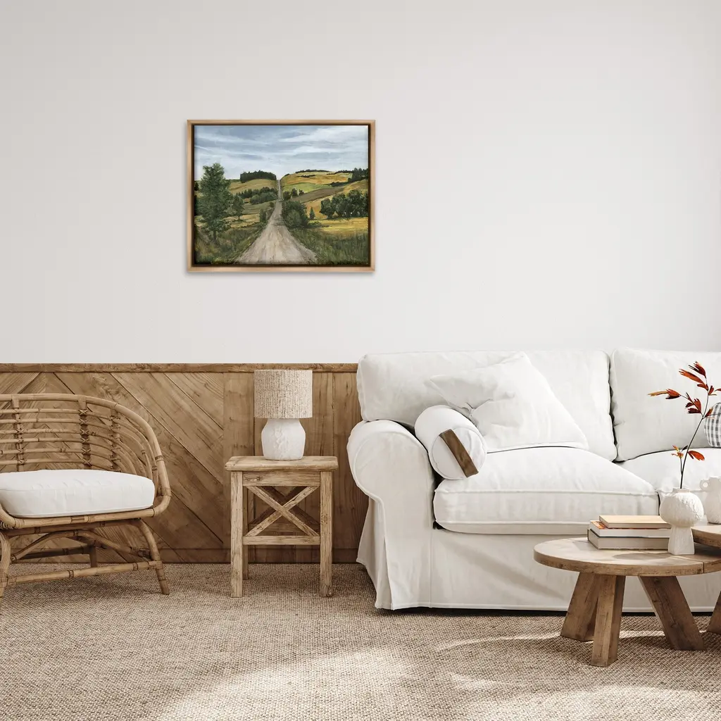 Elevate your home or office to the next level with Stupell Framed Floating Canvas Wall Art. Our premium hand-stretched canvas is mounted securely into a sturdy lightweight frame. The museum-style gap between the wrapped canvas and the box frame gives the illusion of floating artwork. Stupell Wall Art is made in the USA.Features: Dimensions: 21 x 1.7 x 17 Frame, 20 x 1.5 x 16 Canvas ArtFloating Frame Canvas Products are available in sizes 21"x17" and 31"x25". All Floating Frame Canvas Products have a 1.7" Depth.Wall Art is Ready to Hang with Hardware Free Hanging. No Installation required. For Easy Set Up Lean or Layer Artwork on Shelf or Against Wall. Artwork is Permently Fixed into the Frame.Our elevated 1.7" Thick Floating Frame is the perfect complement to our canvas style Wall Art. We use only the highest quality inks in house with industry leading printing solutions. Canvas is hand stretched over a durable wood foundation and then mounted securly into a Modern Box Frame. Made in the USA.Artwork Relates To: Plant, Tree, Path, Road, Oak, Sycamore, Field, Grassland, Nature, Landscape, FarmDesign by Michael Willett