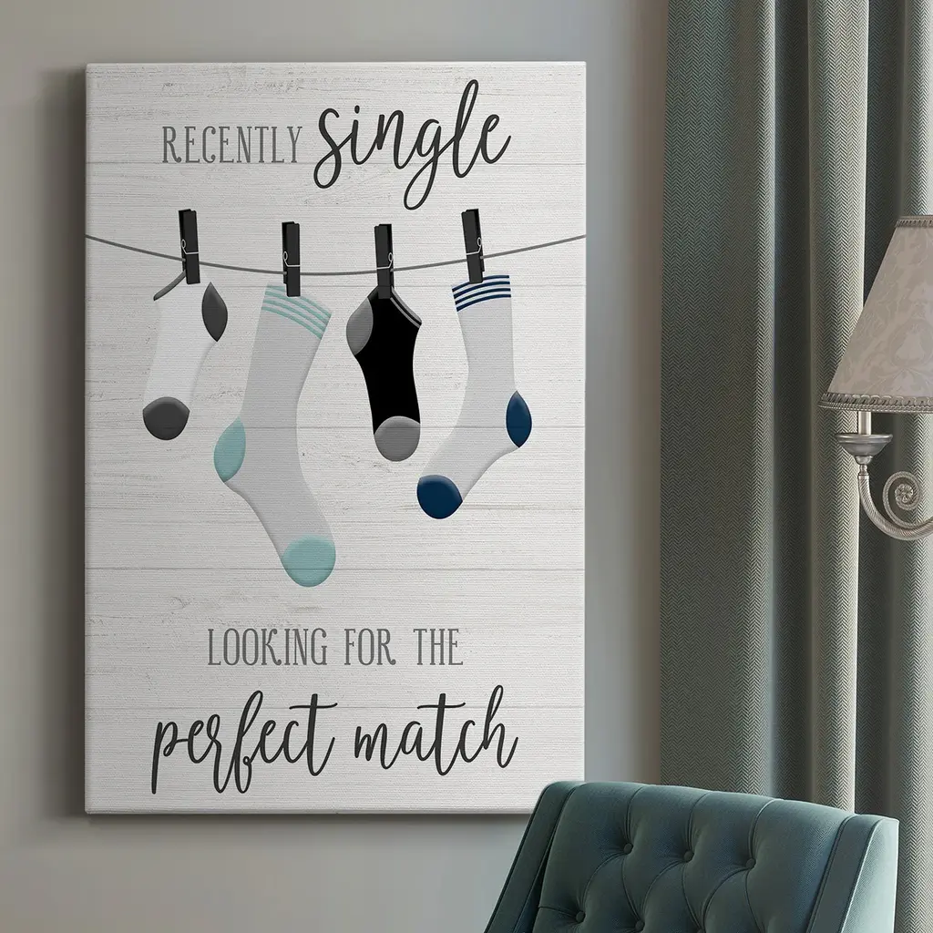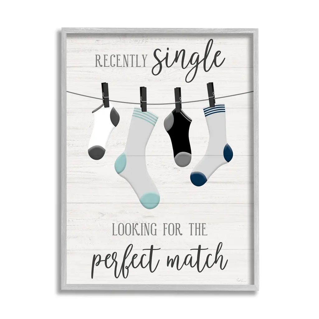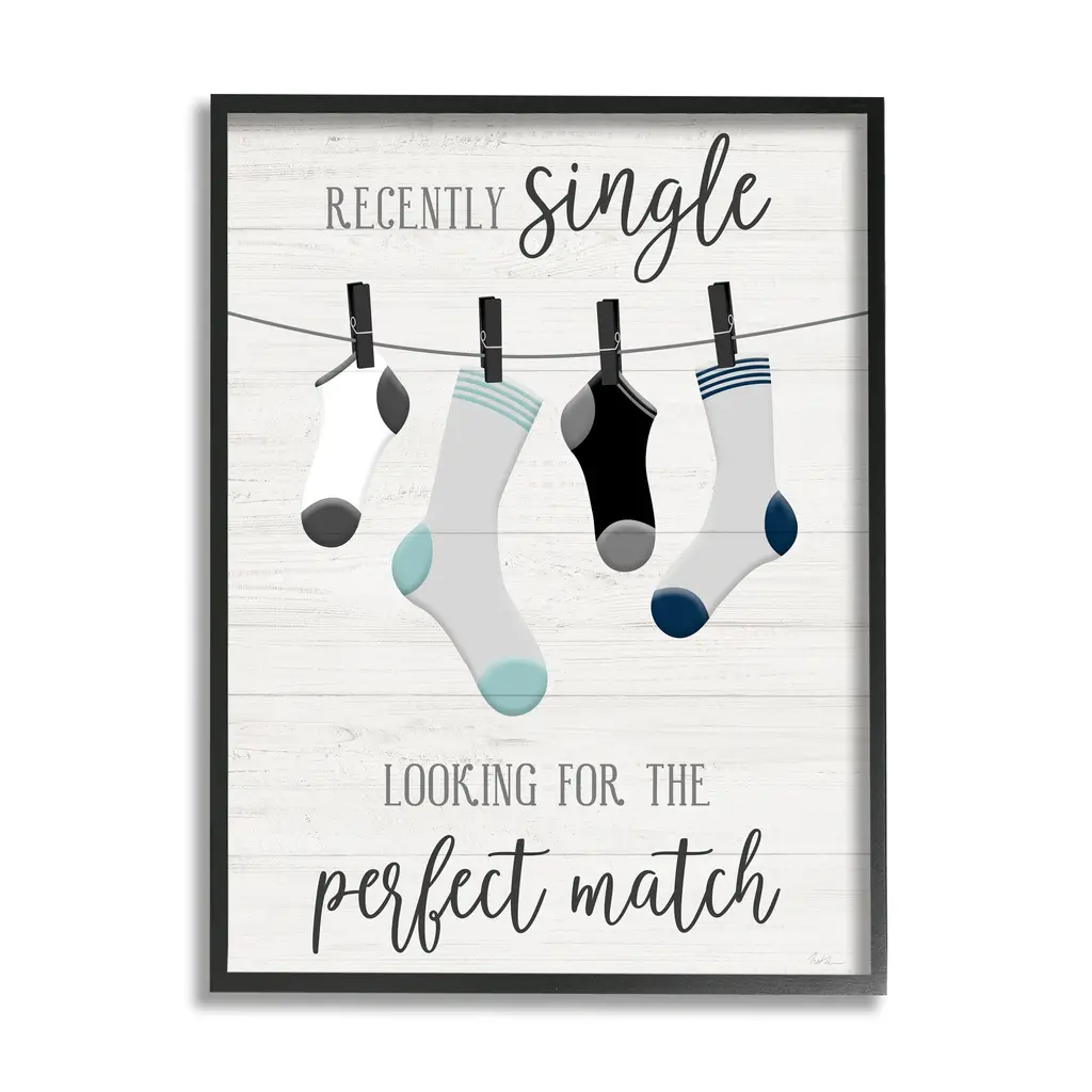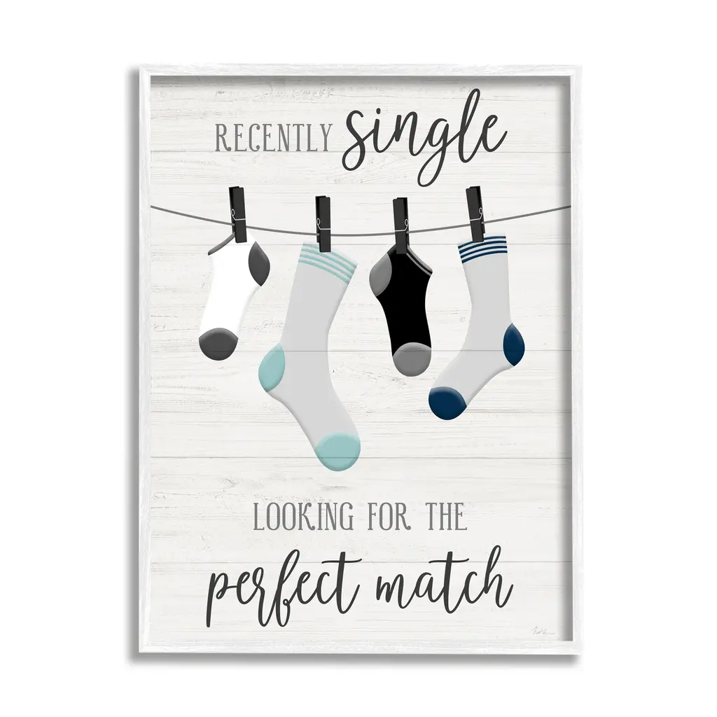 Stupell Recently Single For Perfect Match Laundry Sock Sign Framed Wall Art - Multi-Color - 24 X 30 - White