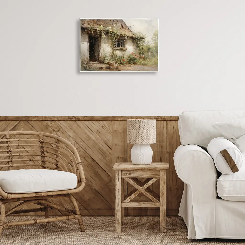 Our wall plaques start as high-quality lithograph prints mounted on durable 0.5-inch thick MDF wood. Each piece is hand finished and comes with a fresh layer of white foil on the sides to give it a crisp, clean look. Plaques arrive ready to hang without installation and come with removable plastic corners to keep them from damage in transit. Stupell Wall Art is made in the USA.Features: Dimensions: 15 x 0.5 x 10 InchesWall Plaque Product Sizes Include 15"x10" and 19"x13". All wall plaque products have a 0.5" Depth. Wall Art is Ready to Hang with Hardware Free Hanging. No installation required. For Easy Set Up Lean or Layer Artwork on Shelf or Against Wall.All of our wall plaques start off as high quality lithograph prints that are then mounted on durable 0.5 inch thick MDF wood. Each piece is hand finished and comes with a fresh layer of foil on the sides to give it a crisp clean look. Made In USA.Artwork Relates To: Architecture, Building, Countryside, Hut, Nature, Rural, Cottage, House, Floral, PlantDesign by Petal Prints Design