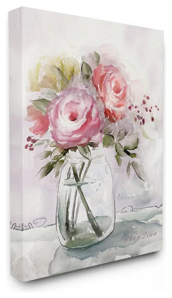 We create our stretched canvas to the highest standards. Using only the highest quality inks and canvas on Mimaki printers, we hand-cut and stretch each piece over a 1.5-inch thick wooden frame for hanging. As a result, the art comes ready to hang on the sturdy ledge with no installation required. Stupell Wall Art is made in the USA.Features: Dimensions: 17 x 1.5 x 17 InchesStretched Canvas Sizes Include Standard: 17 x 1.5 x 17 Large: 24 x 1.5 x 24 X-Large: 30 x 1.5 x 30 Oversized: 36 x 1.5 x 36Wall Art is Ready to Hang with Hardware Free Hanging. No installation required. For Easy Set Up Lean or Layer Artwork on Shelf or Against Wall.Our stretched canvas is created with the highest standards. We use only the highest quality inks and canvas on our in house Mimaki printers, and then hand cut and stretch each piece over a 1.5 inch thick wooden frame for hanging. Made In USA.Artwork Relates To: Painting, Flower, Plant, Vase, Flower Arrangement, Flower Bouquet, Floral, Red, Roses, PeoniesDesign by Danhui Nai