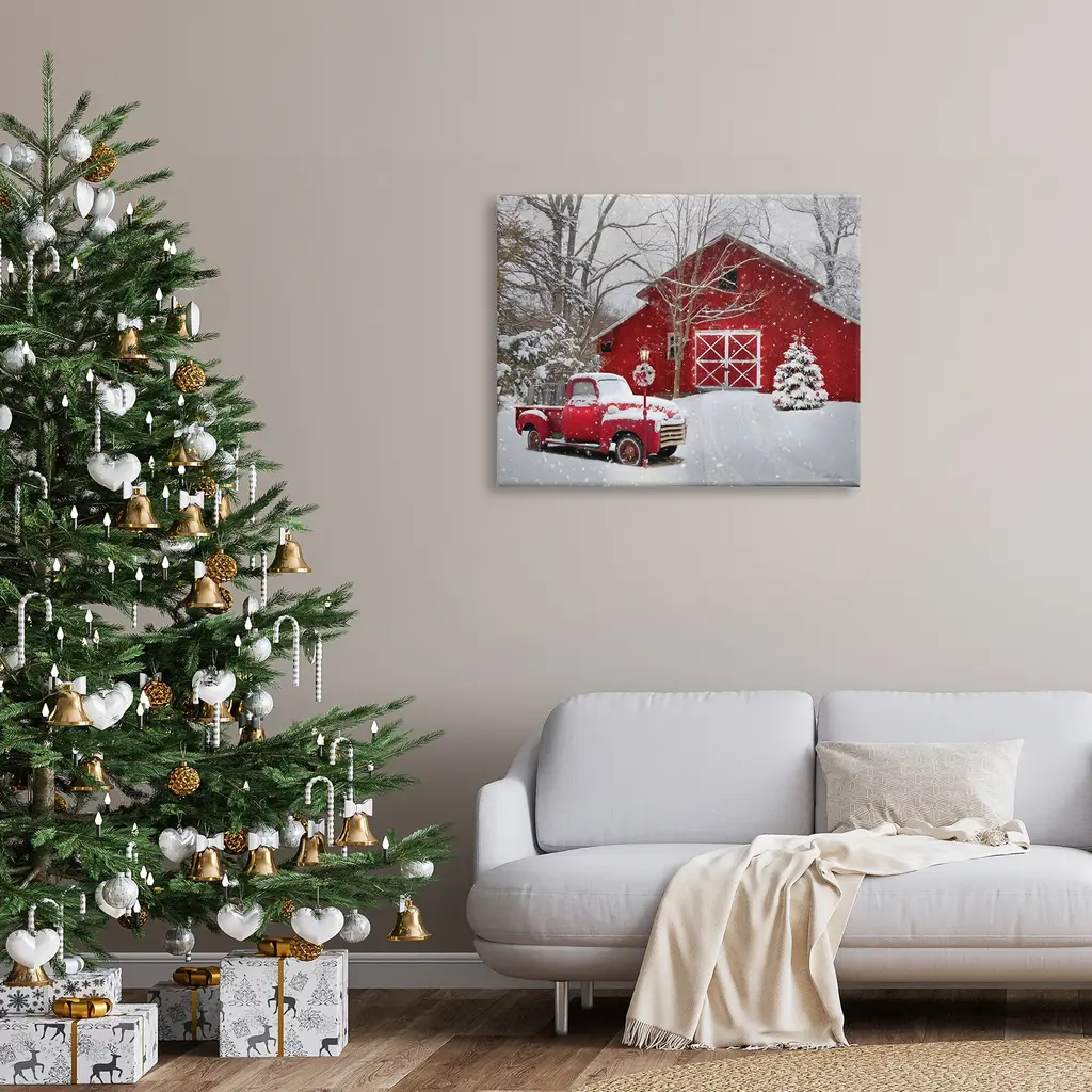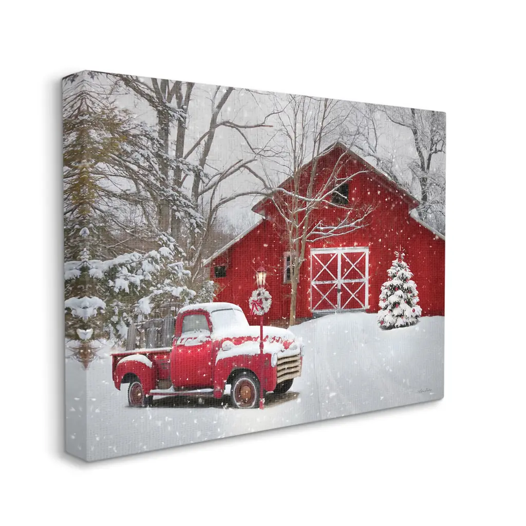Stupell Red Barn & Truck Powdery Snow Rural Scenery Canvas Wall Art - Grey - 40 X 30