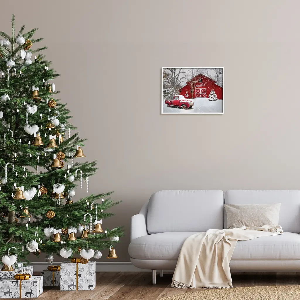 Stupell Red Barn & Truck Powdery Snow Rural Scenery Framed Wall Art - Grey - 20 X 16 - White