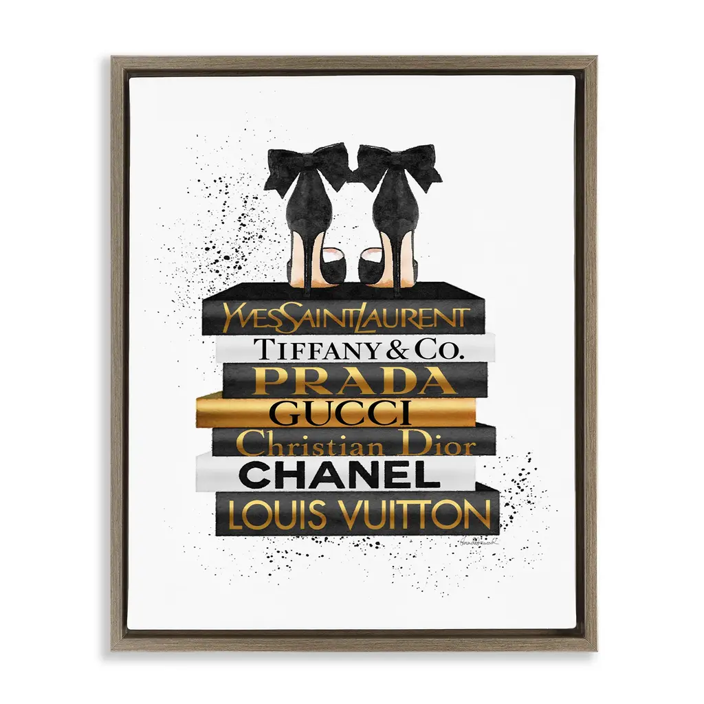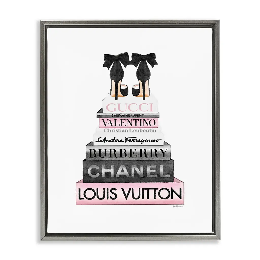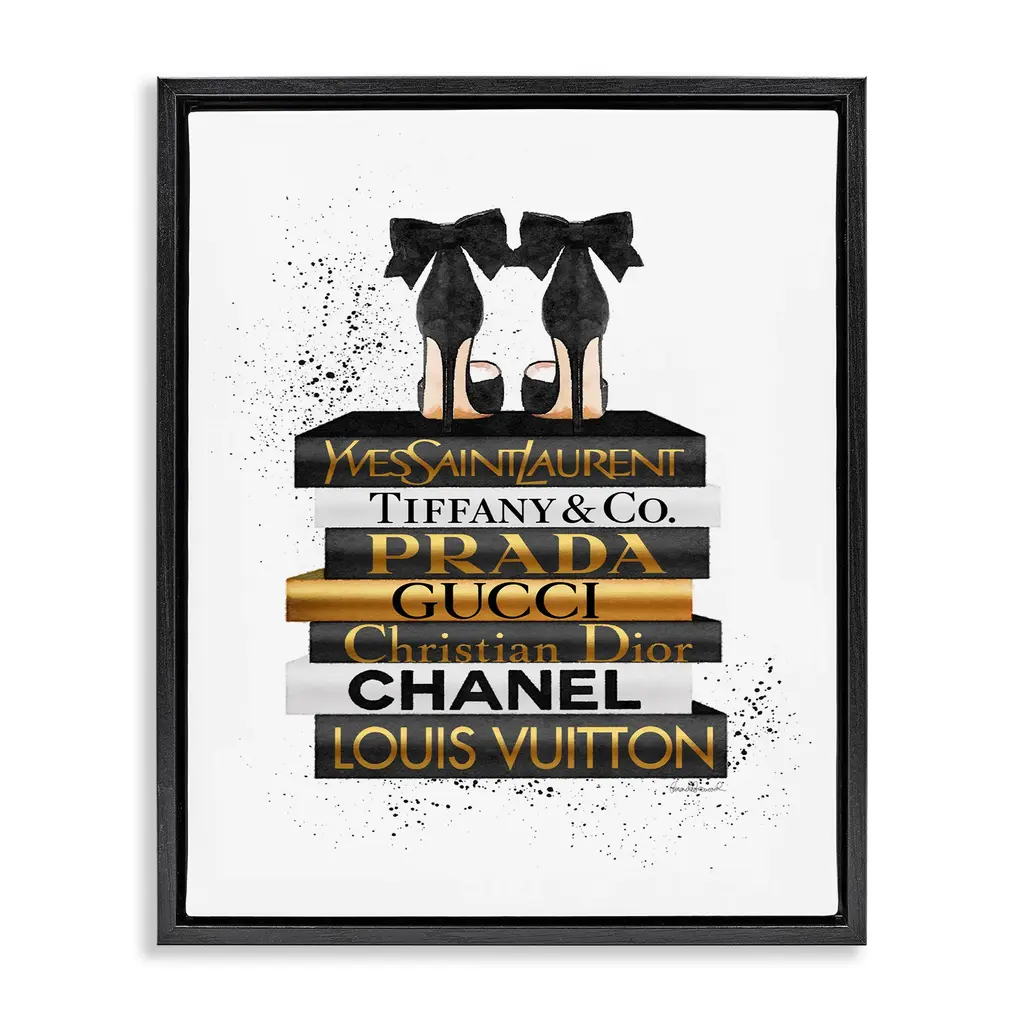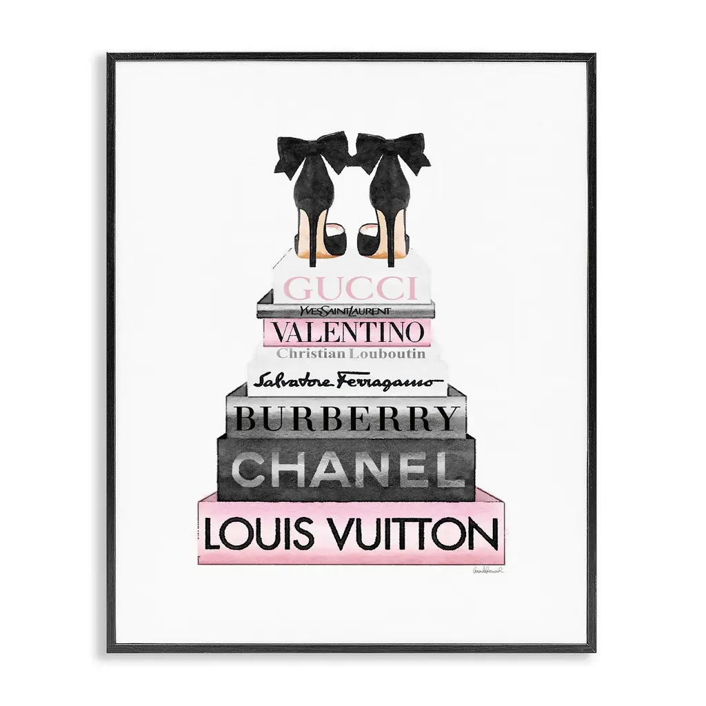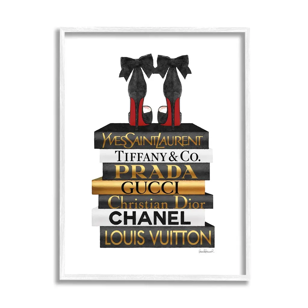 Stupell Red Bottom Heels Glam Fashion Bookstack Framed Wall Art - Black - 24 X 30 - Black