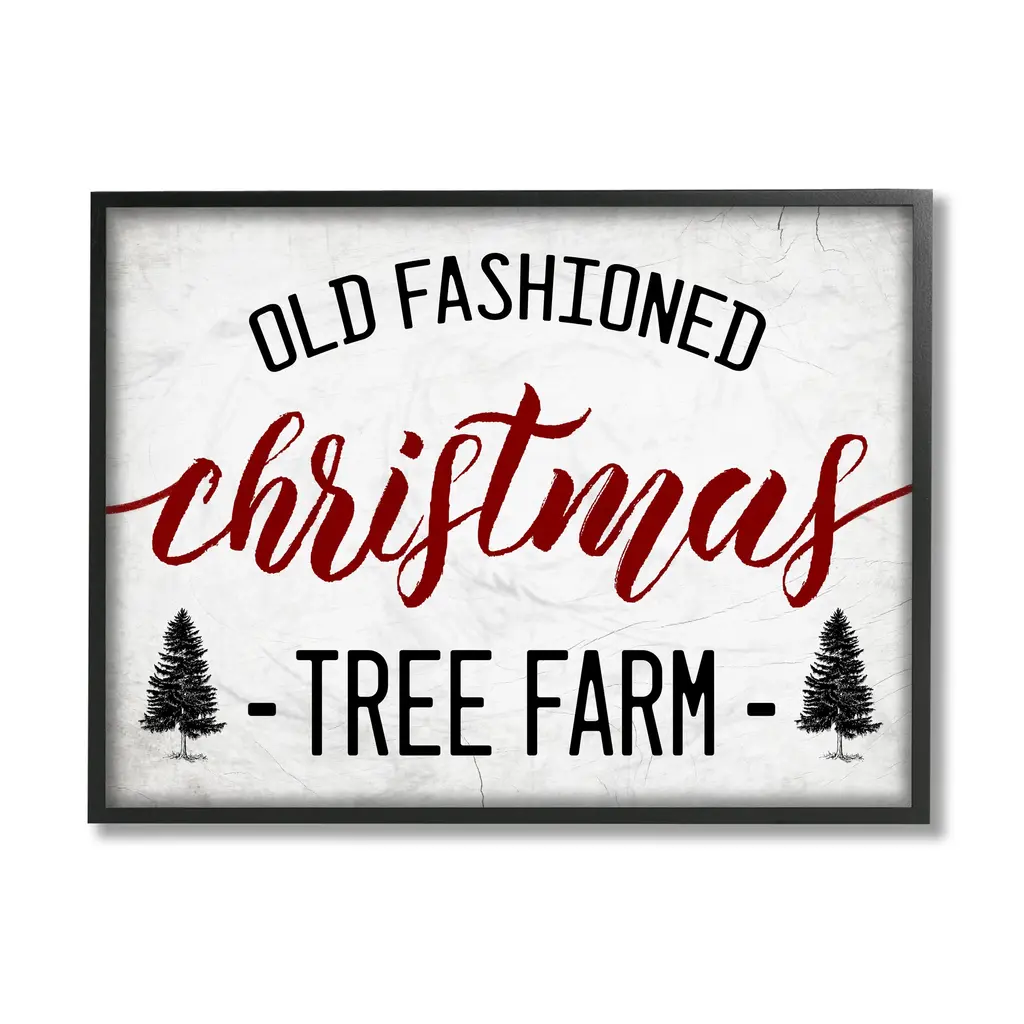 Stupell Red Christmas Rustic Tree Farm Sign Framed Wall Art - 16 X 20 - Black