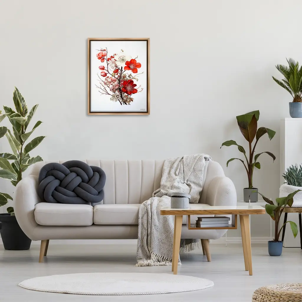 Elevate your home or office to the next level with Stupell Framed Floating Canvas Wall Art. Our premium hand-stretched canvas is mounted securely into a sturdy lightweight frame. The museum-style gap between the wrapped canvas and the box frame gives the illusion of floating artwork. Stupell Wall Art is made in the USA.Features: Dimensions: 17 x 1.7 x 21 Frame, 16 x 1.5 x 20 Canvas ArtFloating Frame Canvas Products are available in sizes 17"x21" and 25"x31". All Floating Frame Canvas Products have a 1.7" Depth.Wall Art is Ready to Hang with Hardware Free Hanging. No Installation required. For Easy Set Up Lean or Layer Artwork on Shelf or Against Wall. Artwork is Permently Fixed into the Frame.Our elevated 1.7" Thick Floating Frame is the perfect complement to our canvas style Wall Art. We use only the highest quality inks in house with industry leading printing solutions. Canvas is hand stretched over a durable wood foundation and then mounted securly into a Modern Box Frame. Made in the USA.Artwork Relates To: Flower, Plant, Bouquet, Vase, Floral, Minimal, Cottage, Country, Cherry BlossomDesign by RB