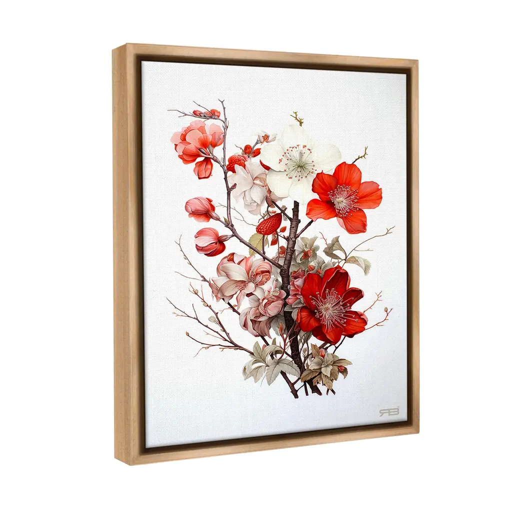 Stupell Red Flower Branches Framed Floater Canvas Wall Art Design By Rb - 25 X 31 - Brown