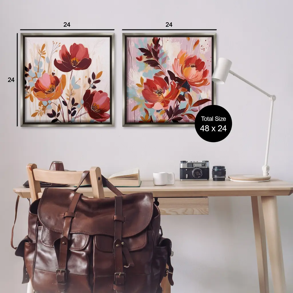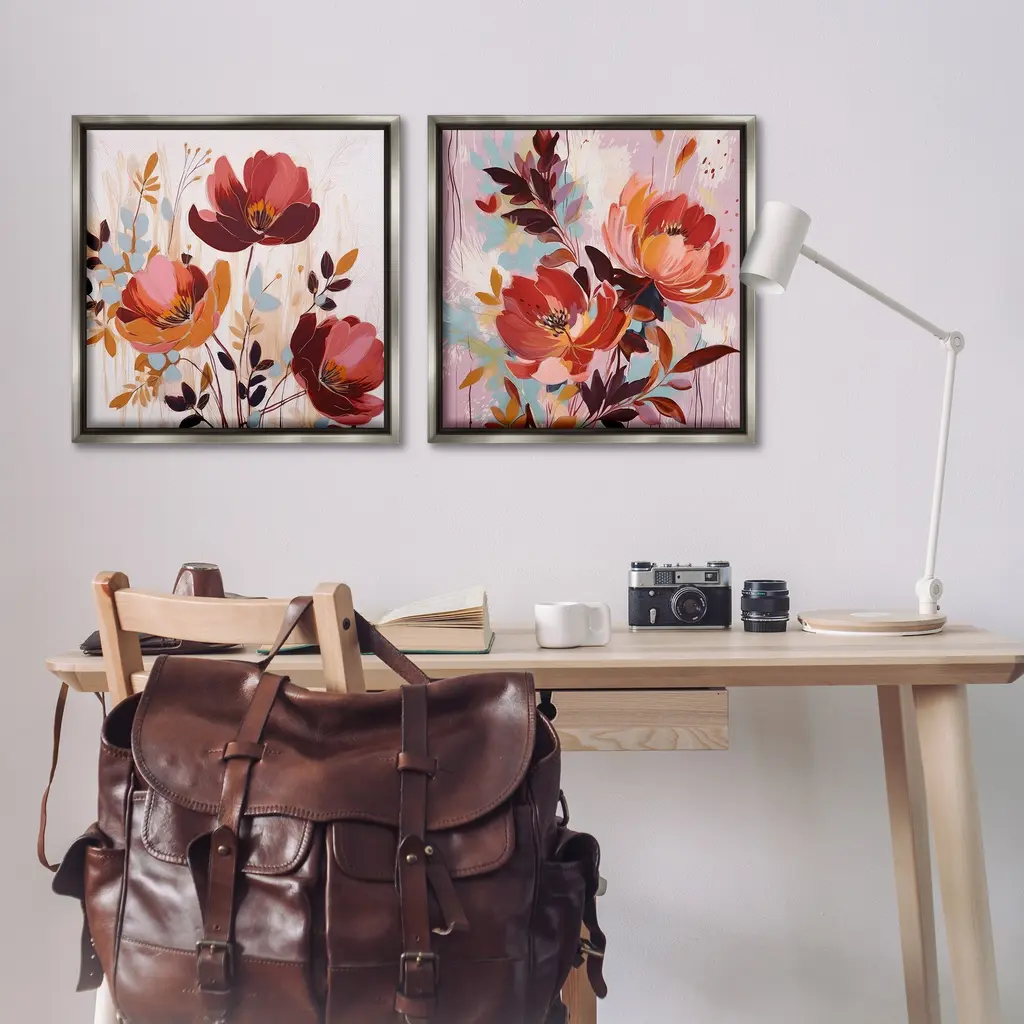 Elevate your home or office to the next level with Stupell Framed Floating Canvas Wall Art. Our premium hand-stretched canvas is mounted securely into a sturdy lightweight frame. The museum-style gap between the wrapped canvas and the box frame gives the illusion of floating artwork. Stupell Wall Art is made in the USA.Features: Dimensions: 2 Piece Set, Each Frame is 18 x 1.7 x 18Two Piece Floating Frame Canvas Products are available as 18"x18" or 25"x25" Panels. All Floating Frame Canvas Products have a 1.7" Depth.Wall Art is Ready to Hang with Hardware Free Hanging. No Installation required. For Easy Set Up Lean or Layer Artwork on Shelf or Against Wall. Artwork is Permently Fixed into the Frame.Our elevated 1.7" Thick Floating Frame is the perfect complement to our canvas style Wall Art. We use only the highest quality inks in house with industry leading printing solutions. Canvas is hand stretched over a durable wood foundation and then mounted securly into a Modern Box Frame. Made in the USA.Artwork Relates To: Floral, Pattern, Flower, Petal, Plant, Botanical, Bouquet, ModernDesign by Lazar Studio