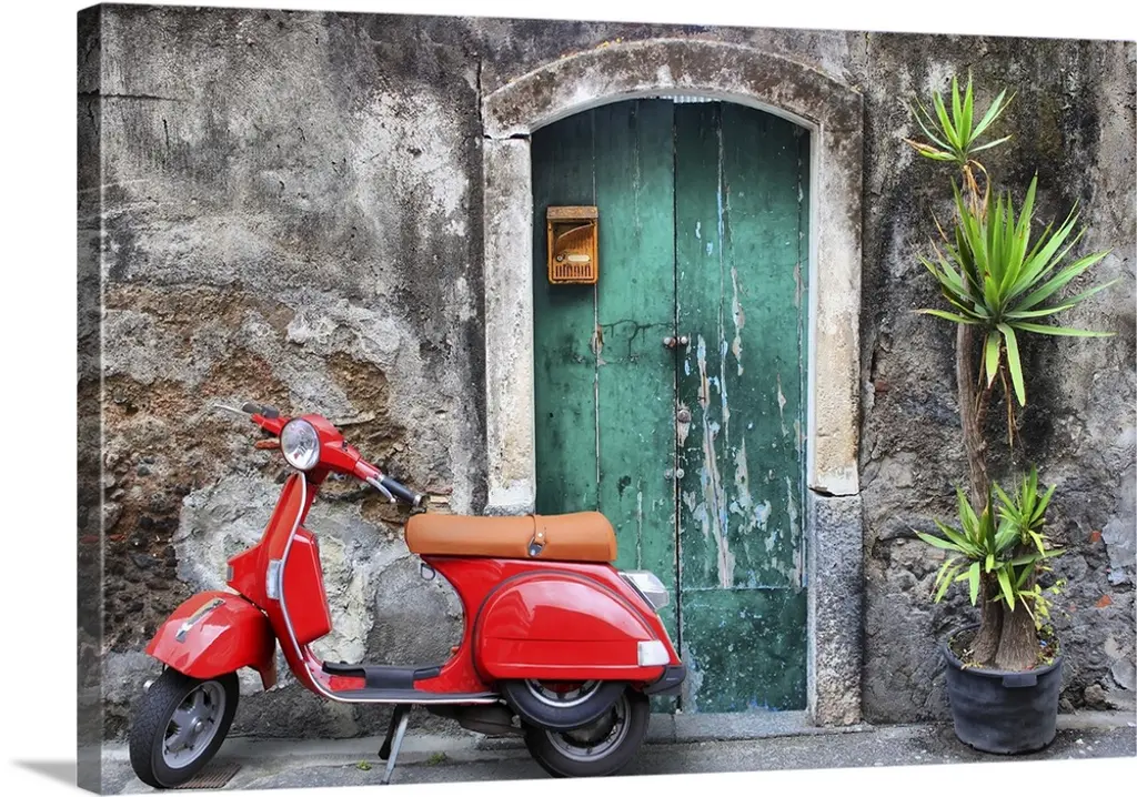 Add dimension to any room with our textured Framed Giclee Artwork. Our framed artwork is securely mounted into a 1.5-inch thick wood grain frame and ready to hang. Frames are available in three alluring styles: black, gray farmhouse and white. In addition, you should check out our oversized options if you want a statement piece. Stupell Wall Art is made in the USA.Features: Dimensions: 11 x 1.5 x 14 FramedFramed Giclee Products are available in the sizes 11"x14", 16"x20" or 24"x30". All Framed Giclee Products have a 1.5" Depth. Wall Art is Ready to Hang with Hardware Free Hanging. No installation required. For Easy Set Up Lean or Layer Artwork on Shelf or Against Wall.Our giclée prints are carefully mounted on a durable MDF backing, and then perfectly finished in a 1.5 inch thick woodgrain frame. Mounted frame colors include black, gray farmhouse and white. Made In USA.Artwork Relates To: Scooter, Vehicle, Motorcycle, City, Road, Street, Urban, Motor Scooter, Path, Moped, Cobblestone, ArchitectureDesign by Aledanda