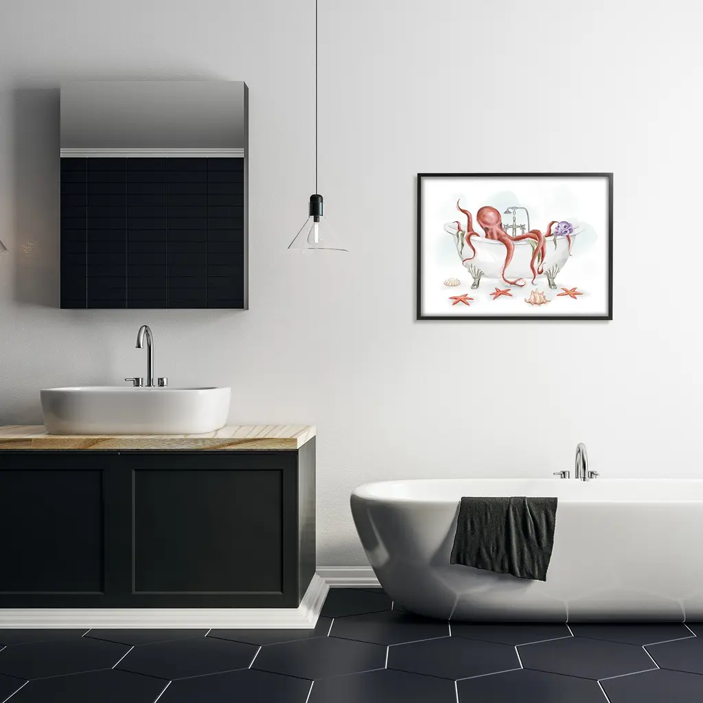 Stupell Red Octopus Nautical Claw Bath Sea Shells Framed Wall Art - 24 X 30 - Black