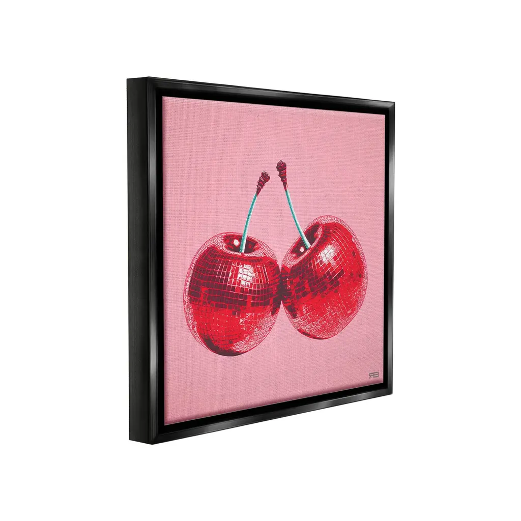 Elevate your home or office to the next level with Stupell Framed Floating Canvas Wall Art. Our premium hand-stretched canvas is mounted securely into a sturdy lightweight frame. The museum-style gap between the wrapped canvas and the box frame gives the illusion of floating artwork. Stupell Wall Art is made in the USA.Features: Dimensions: 18 x 1.7 x 18 Frame, 17 x 1.5 x 17 Canvas ArtFloating Frame Canvas Products are available in sizes 18"x18" and 25"x25". All Floating Frame Canvas Products have a 1.7" Depth.Wall Art is Ready to Hang with Hardware Free Hanging. No Installation required. For Easy Set Up Lean or Layer Artwork on Shelf or Against Wall. Artwork is Permently Fixed into the Frame.Our elevated 1.7" Thick Floating Frame is the perfect complement to our canvas style Wall Art. We use only the highest quality inks in house with industry leading printing solutions. Canvas is hand stretched over a durable wood foundation and then mounted securly into a Modern Box Frame. Made in the USA.Artwork Relates To: Dance, Music, Disco, Pattern, Abstract, Shape, Modern, Glam, Cherry, FruitDesign by RB