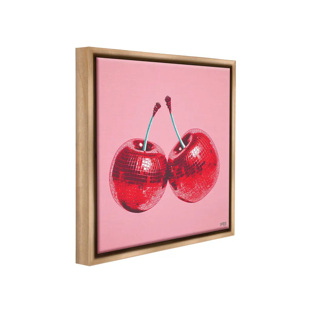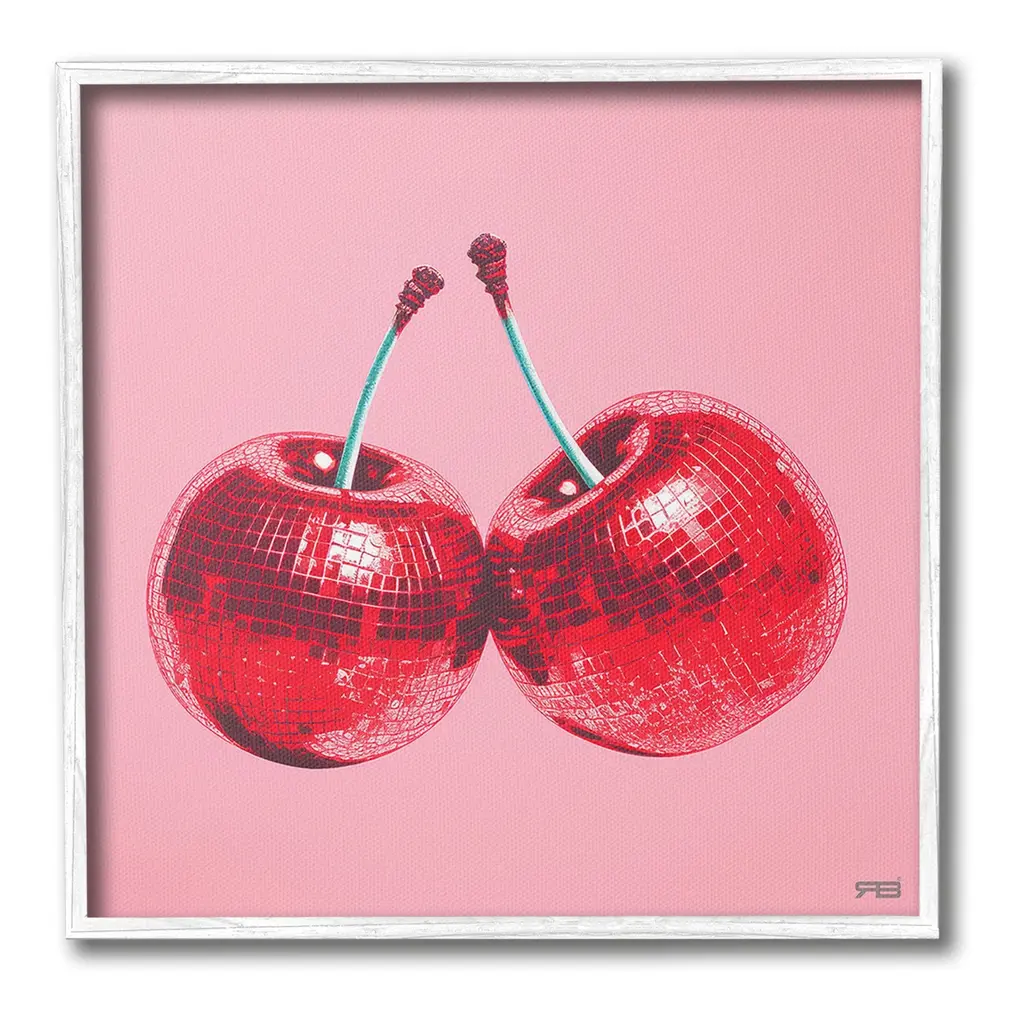 Elevate your home or office to the next level with Stupell Framed Floating Canvas Wall Art. Our premium hand-stretched canvas is mounted securely into a sturdy lightweight frame. The museum-style gap between the wrapped canvas and the box frame gives the illusion of floating artwork. Stupell Wall Art is made in the USA.Features: Dimensions: 18 x 1.7 x 18 Frame, 17 x 1.5 x 17 Canvas ArtFloating Frame Canvas Products are available in sizes 18"x18" and 25"x25". All Floating Frame Canvas Products have a 1.7" Depth.Wall Art is Ready to Hang with Hardware Free Hanging. No Installation required. For Easy Set Up Lean or Layer Artwork on Shelf or Against Wall. Artwork is Permently Fixed into the Frame.Our elevated 1.7" Thick Floating Frame is the perfect complement to our canvas style Wall Art. We use only the highest quality inks in house with industry leading printing solutions. Canvas is hand stretched over a durable wood foundation and then mounted securly into a Modern Box Frame. Made in the USA.Artwork Relates To: Dance, Music, Disco, Pattern, Abstract, Shape, Modern, Glam, Cherry, FruitDesign by RB