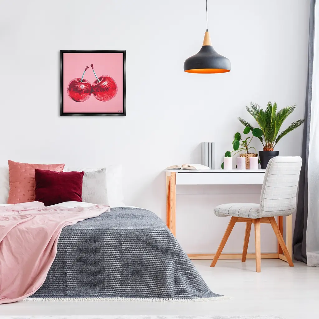 Elevate your home or office to the next level with Stupell Framed Floating Canvas Wall Art. Our premium hand-stretched canvas is mounted securely into a sturdy lightweight frame. The museum-style gap between the wrapped canvas and the box frame gives the illusion of floating artwork. Stupell Wall Art is made in the USA.Features: Dimensions: 18 x 1.7 x 18 Frame, 17 x 1.5 x 17 Canvas ArtFloating Frame Canvas Products are available in sizes 18"x18" and 25"x25". All Floating Frame Canvas Products have a 1.7" Depth.Wall Art is Ready to Hang with Hardware Free Hanging. No Installation required. For Easy Set Up Lean or Layer Artwork on Shelf or Against Wall. Artwork is Permently Fixed into the Frame.Our elevated 1.7" Thick Floating Frame is the perfect complement to our canvas style Wall Art. We use only the highest quality inks in house with industry leading printing solutions. Canvas is hand stretched over a durable wood foundation and then mounted securly into a Modern Box Frame. Made in the USA.Artwork Relates To: Dance, Music, Disco, Pattern, Abstract, Shape, Modern, Glam, Cherry, FruitDesign by RB