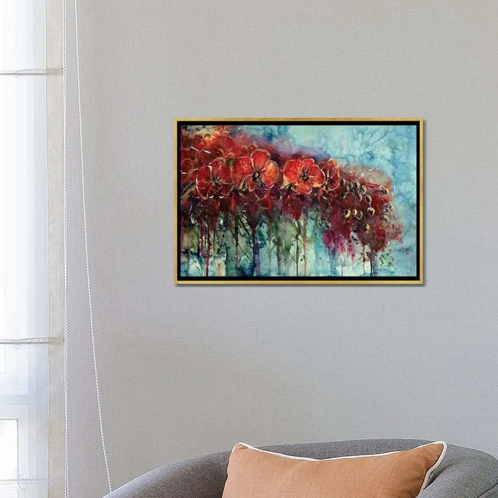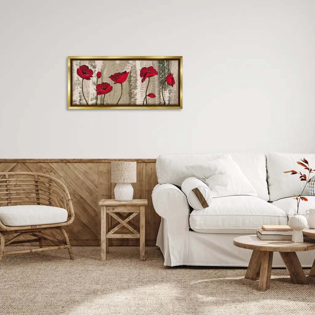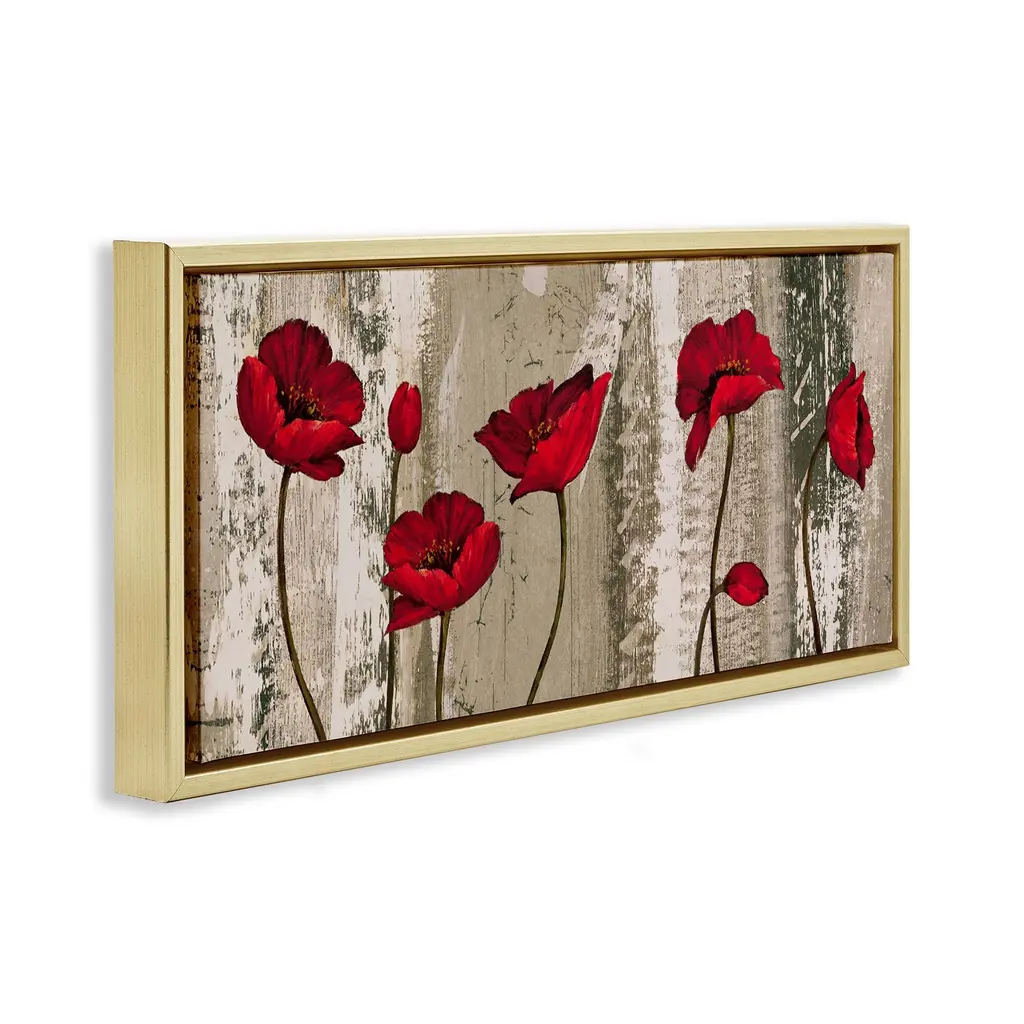 Stupell Red Poppies Rustic Pattern Framed Floater Canvas Wall Art Design By Brian Francis - 31 X 14 - Gold