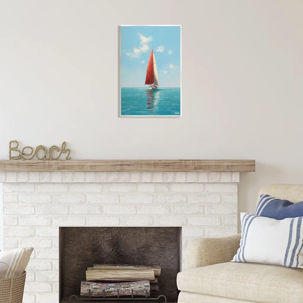 Stupell Red Sailboat On Sea Wall Plaque Art Design By Rb - 13 X 19