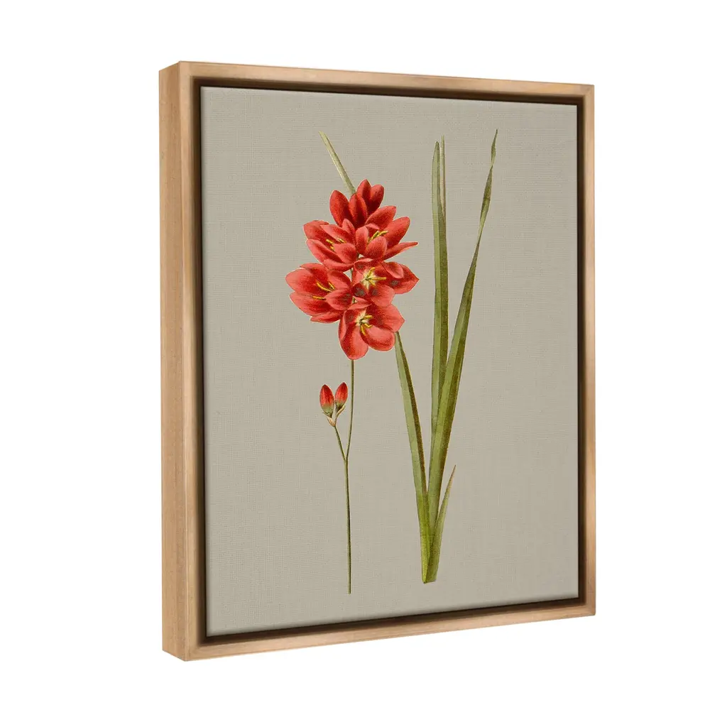 Stupell Red Traditional Botanical Framed Floater Canvas Wall Art Design By Vision Studio - 17 X 21 - Brown