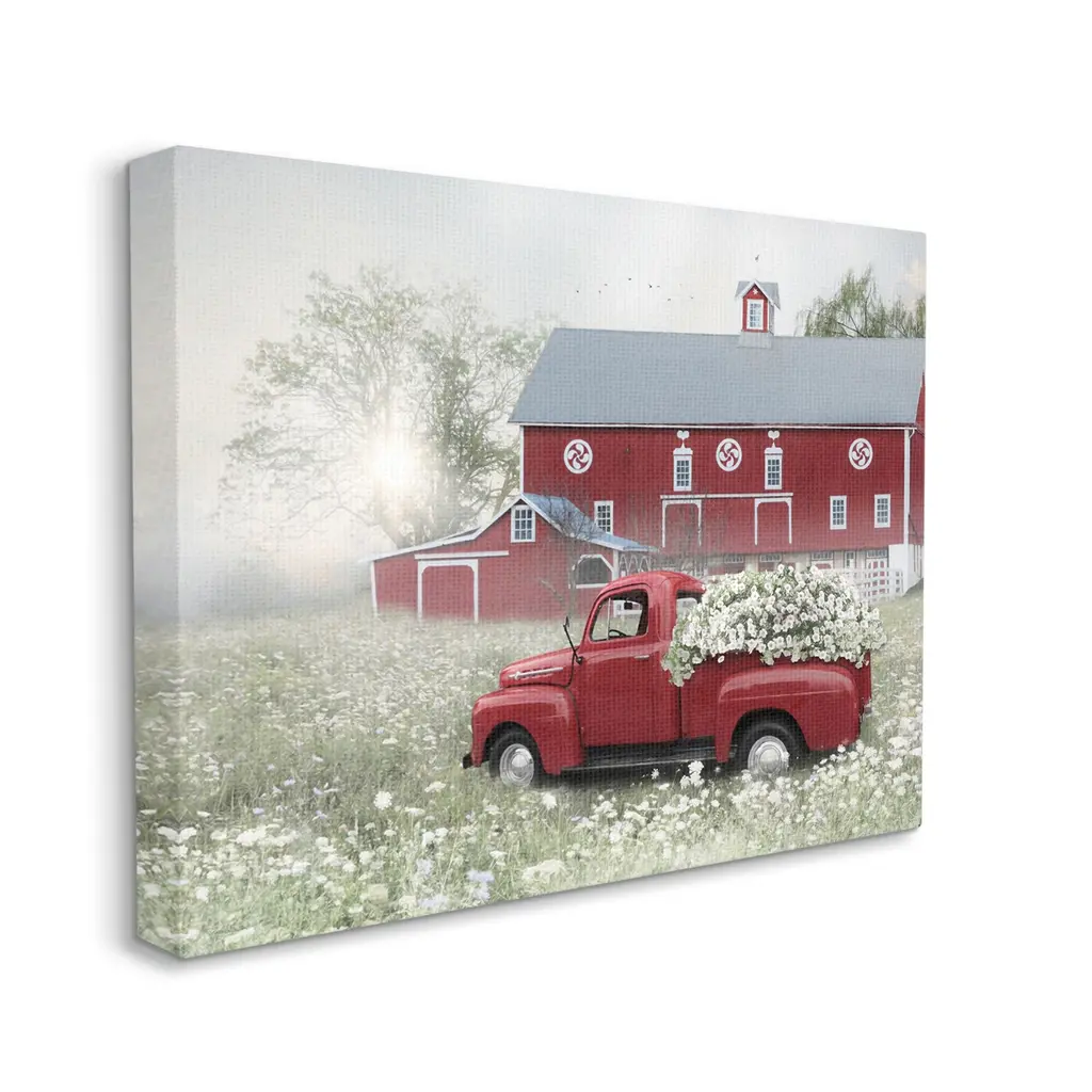 Proudly made in the USA, Our stretched canvas is created with the highest standards. We use only the highest quality inks and canvas on our in house Mimaki printers, and then hand cut and stretch each piece over a 1.5 inch thick wooden frame for hanging. The art comes ready to hang with no installation required. Room Type: Living Room, Den, Hallway, Office, Entryway, Study, Dining Room or Bedroom, Guest Room, Studio, Dorm or BoudoirFeatures: Dimensions: 20 x 1.5 x 16 InchesStretched Canvas Sizes Include Standard: 20 x 1.5 x 16 Large: 30 x 1.5 x 20 X-Large: 40 x 1.5 x 30 Oversized: 48 x 1.5 x 36Wall Art is Ready to Hang - No Installation or Hardware Needed. For Easy Set Up Lean or Layer Artwork on Shelf or Against Wall.Our stretched canvas is created with the highest standards. We use only the highest quality inks and canvas on our in house Mimaki printers, and then hand cut and stretch each piece over a 1.5 inch thick wooden frame for hanging. Made In USA.Artwork Relates To: Countryside, Nature, Rural, Grass, Plant, Vegetation, Farm, Pickup Truck, Red, Floral, MeadowDesign by Lori Deiter