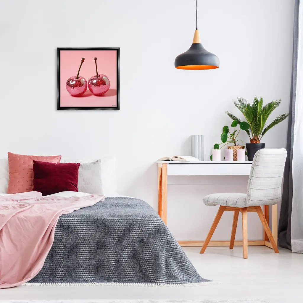 Stupell Reflective Cherries On Pink Framed Floater Canvas Wall Art Design By Rb - 25 X 25 - Black