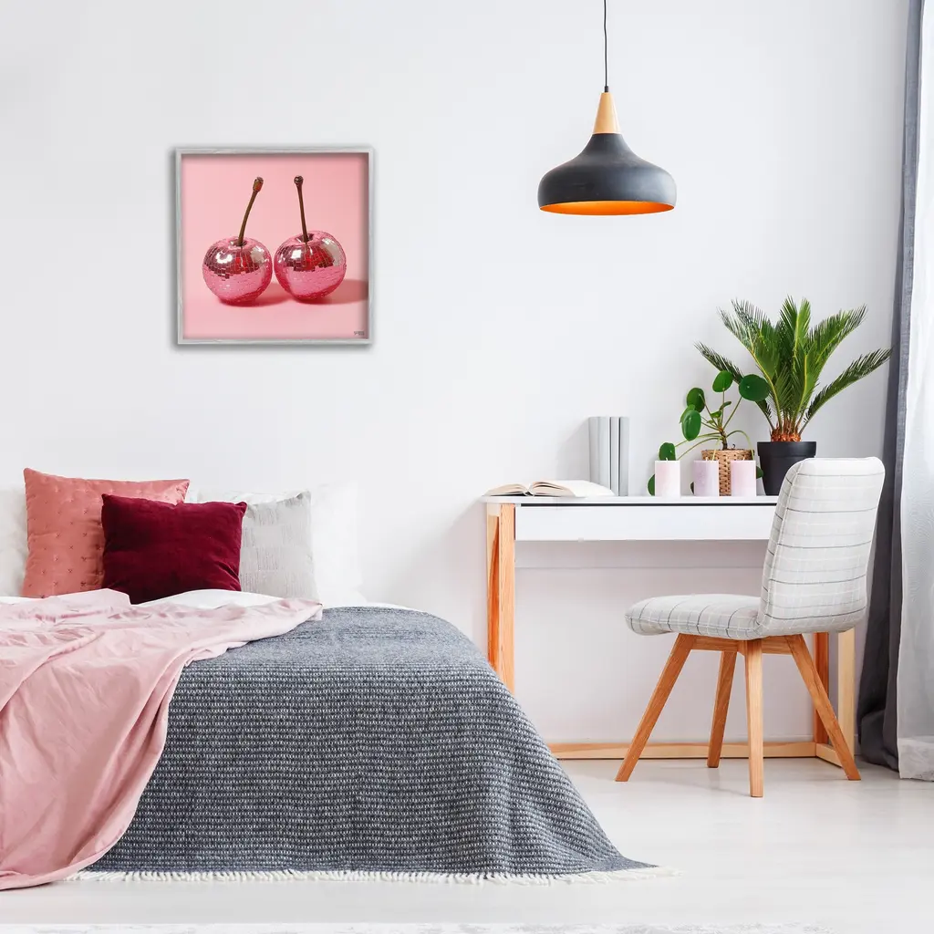 Stupell Reflective Cherries On Pink Framed Giclee Art Design By Rb - 24 X 24 - Grey
