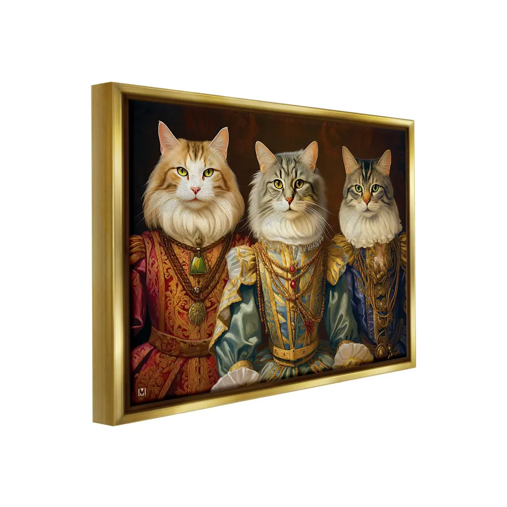 Stupell Regal Cat Trio Framed Floater Canvas Wall Art Design By Michael David Ward - 21 X 17 - Gold
