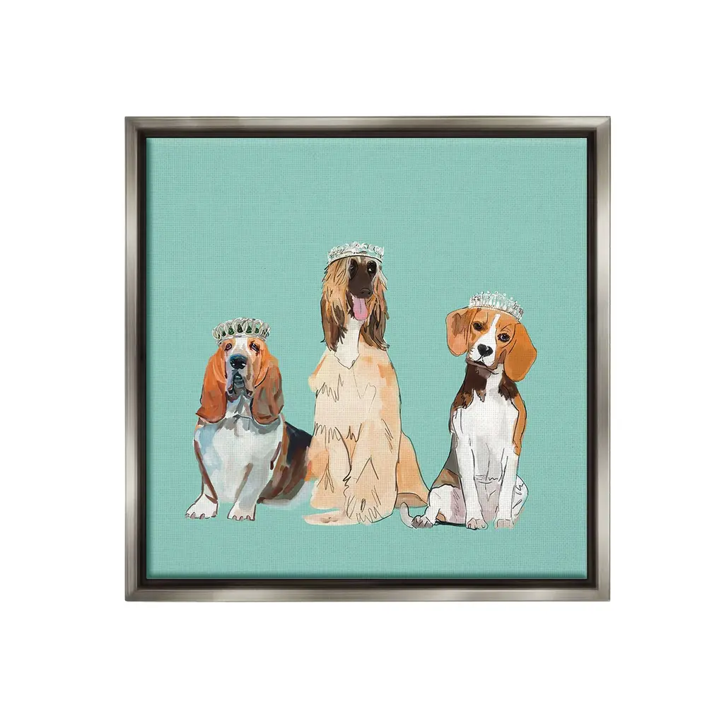 Elevate your home or office to the next level with Stupell Framed Floating Canvas Wall Art. Our premium hand-stretched canvas is mounted securely into a sturdy lightweight frame. The museum-style gap between the wrapped canvas and the box frame gives the illusion of floating artwork. Stupell Wall Art is made in the USA.Features: Dimensions: 18 x 1.7 x 18 Frame, 17 x 1.5 x 17 Canvas ArtFloating Frame Canvas Products are available in sizes 18"x18" and 25"x25". All Floating Frame Canvas Products have a 1.7" Depth.Wall Art is Ready to Hang with Hardware Free Hanging. No Installation required. For Easy Set Up Lean or Layer Artwork on Shelf or Against Wall. Artwork is Permently Fixed into the Frame.Our elevated 1.7" Thick Floating Frame is the perfect complement to our canvas style Wall Art. We use only the highest quality inks in house with industry leading printing solutions. Canvas is hand stretched over a durable wood foundation and then mounted securly into a Modern Box Frame. Made in the USA.Artwork Relates To: Animal, Canine, Dog, Mammal, Pet, Puppy, Tiara, Crown, Princess, BeagleDesign by Amelia Noyes