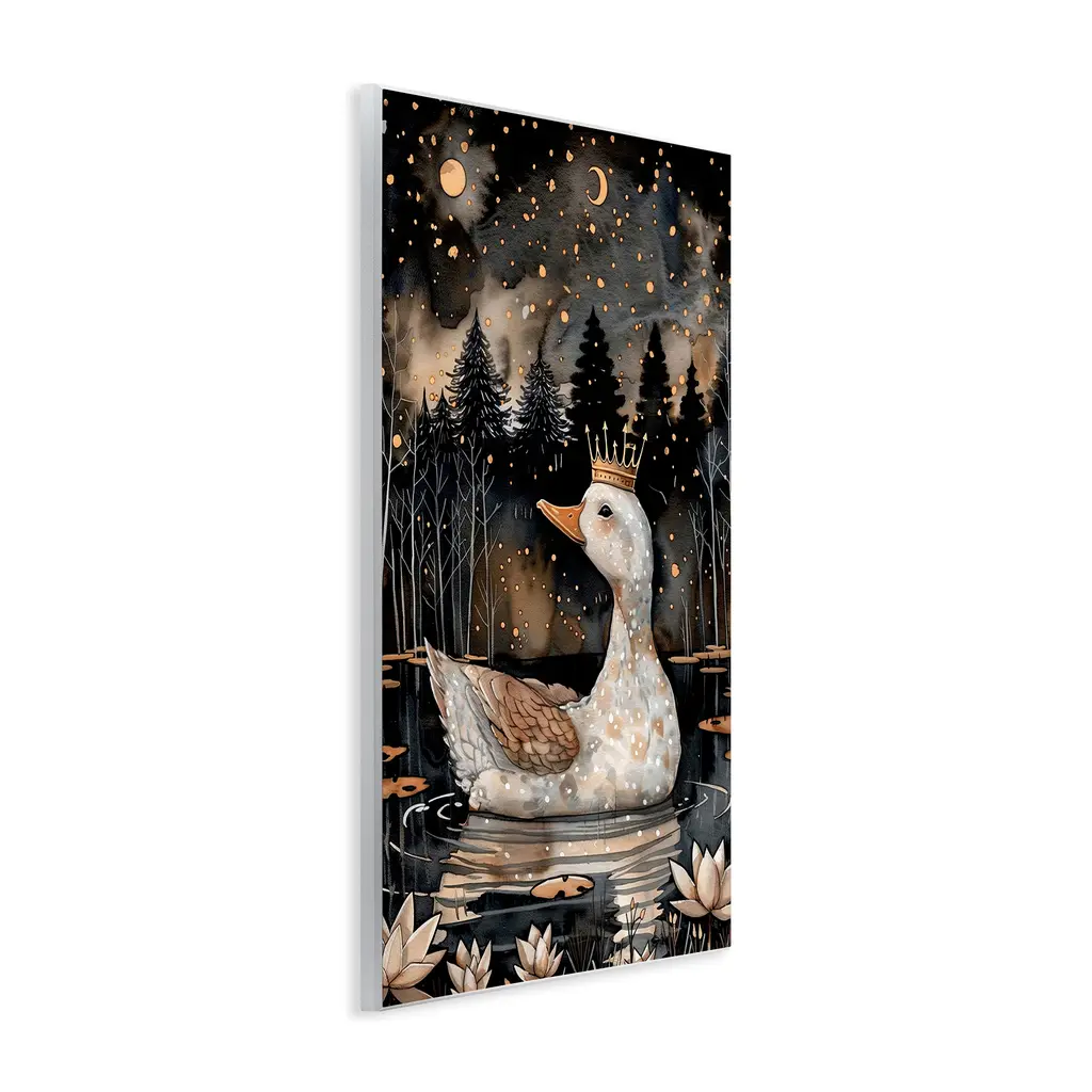 Our wall plaques start as high-quality lithograph prints mounted on durable 0.5-inch thick MDF wood. Each piece is hand finished and comes with a fresh layer of white foil on the sides to give it a crisp, clean look. Plaques arrive ready to hang without installation and come with removable plastic corners to keep them from damage in transit. Stupell Wall Art is made in the USA.Features: Dimensions: 10 x 0.5 x 15 InchesWall Plaque Product Sizes Include 10"x15" and 13"x19". All wall plaque products have a 0.5" Depth. Wall Art is Ready to Hang with Hardware Free Hanging. No installation required. For Easy Set Up Lean or Layer Artwork on Shelf or Against Wall.All of our wall plaques start off as high quality lithograph prints that are then mounted on durable 0.5 inch thick MDF wood. Each piece is hand finished and comes with a fresh layer of foil on the sides to give it a crisp clean look. Made In USA.Artwork Relates To: Animal, Water, Lake, Moon, Night, Crown, Nature, DuckDesign by The Dutch Lady