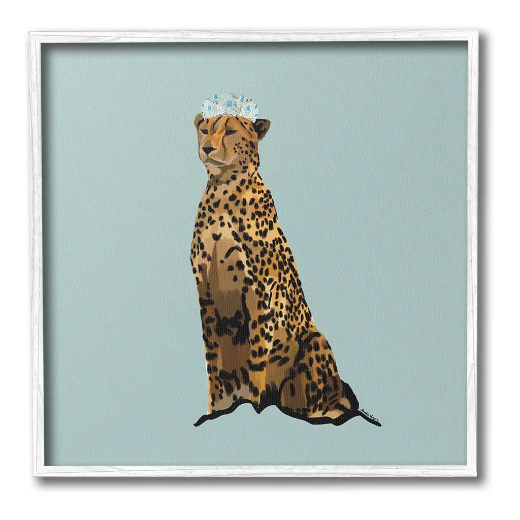 Add dimension to any room with our textured Framed Giclee Artwork. Our framed artwork is securely mounted into a 1.5-inch thick wood grain frame and ready to hang. Frames are available in three alluring styles: black, gray farmhouse and white. In addition, you should check out our oversized options if you want a statement piece. Stupell Wall Art is made in the USA.Features: Dimensions: 12 x 1.5 x 12 FramedFramed Giclee Product Sizes Include 12"x12", 17"x17", and 24"x24". Framed Giclee Products have a 1.5" Depth. Wall Art is Ready to Hang with Hardware Free Hanging. No installation required. For Easy Set Up Lean or Layer Artwork on Shelf or Against Wall.Our giclée prints are carefully mounted on a durable MDF backing, and then perfectly finished in a 1.5 inch thick woodgrain frame. Mounted frame colors include black, gray farmhouse and white. Made In USA.Artwork Relates To: Animal, Cheetah, Mammal, Wildlife, LeopardDesign by Amelia Noyes