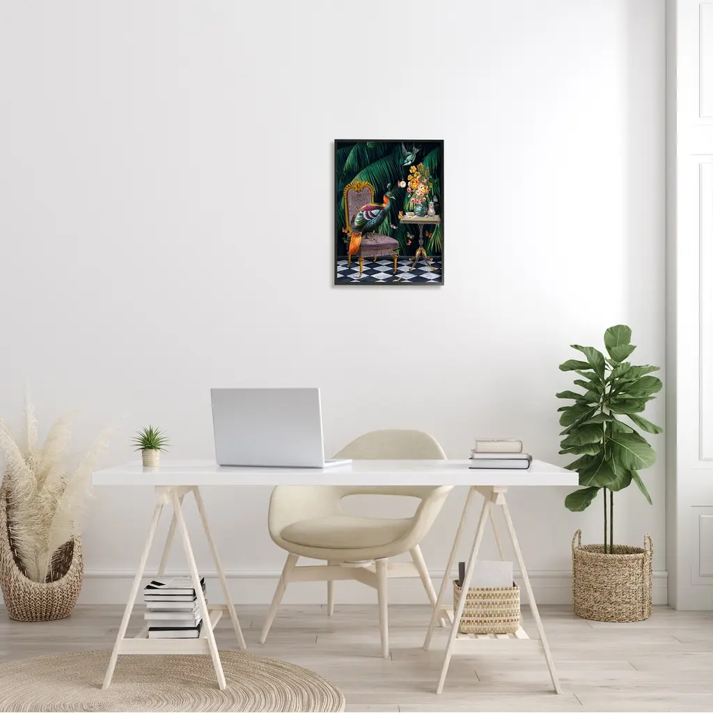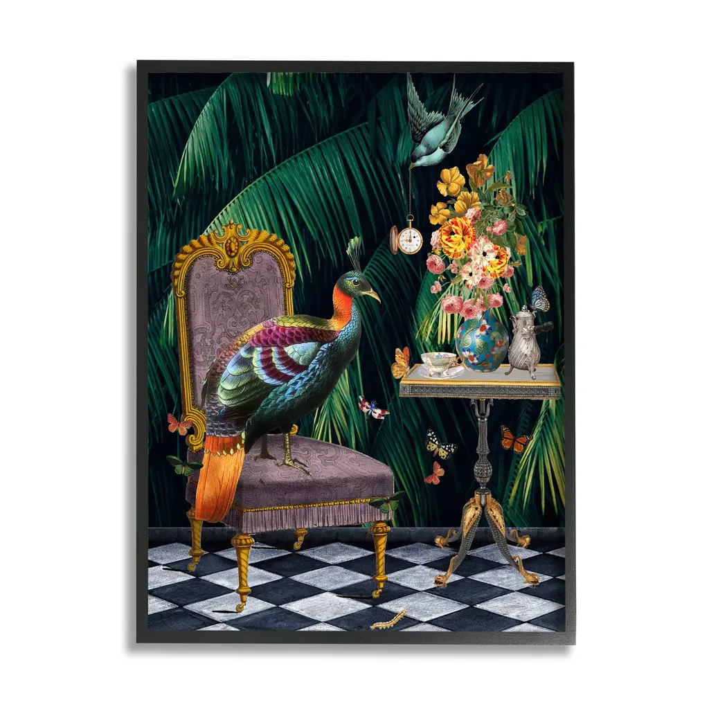 Stupell Regal Peacock On Chair Falling Palm Fronds Framed Wall Art - Green - 11 X 14 - Black
