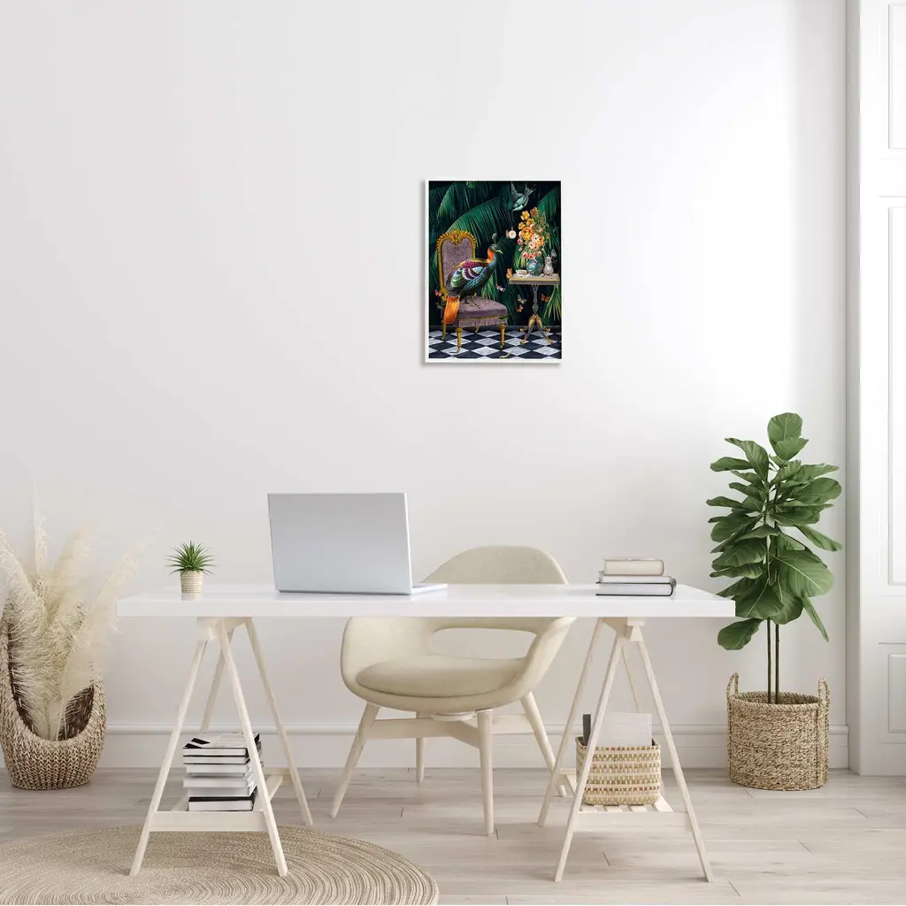 Stupell Regal Peacock On Chair Falling Palm Fronds Framed Wall Art - Green - 16 X 20 - White