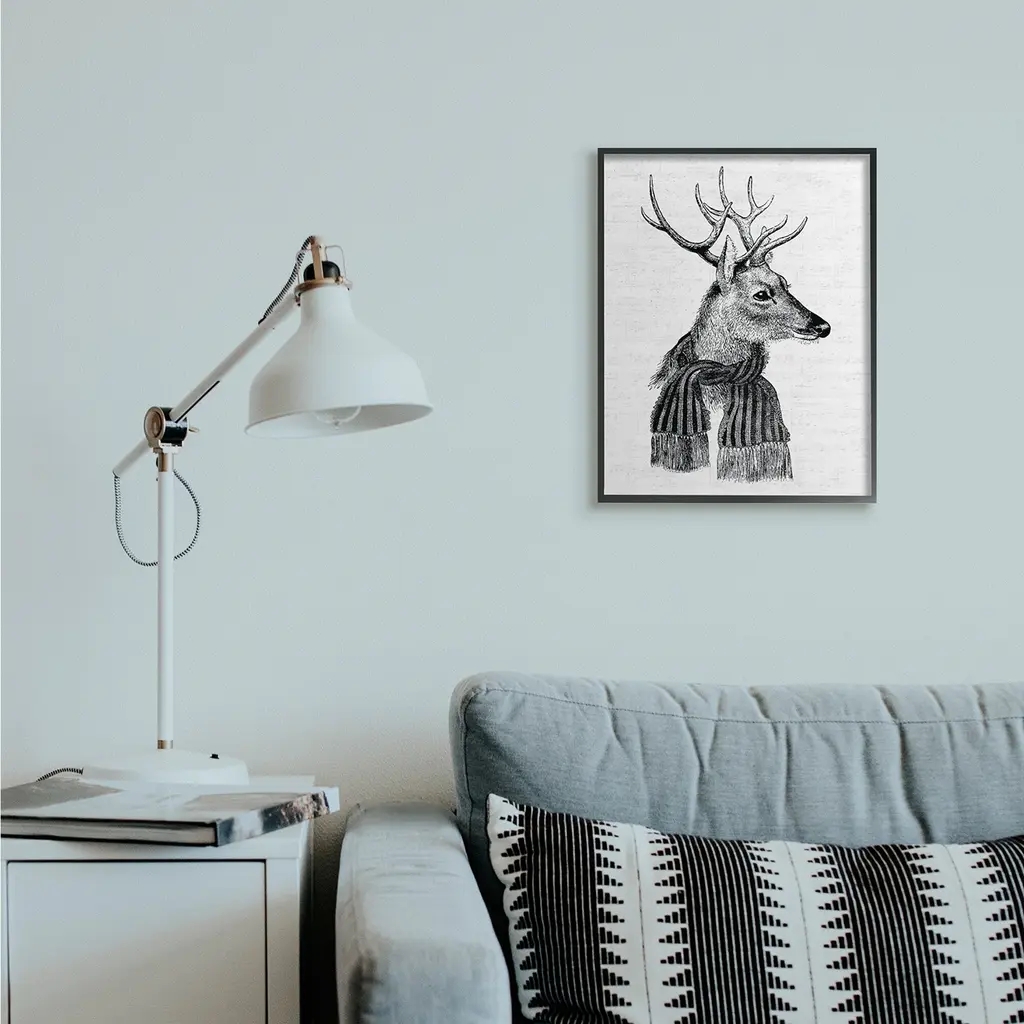 Stupell Reindeer In Scarf Minimal Vintage Portrait Framed Wall Art - 16 X 20 - Black