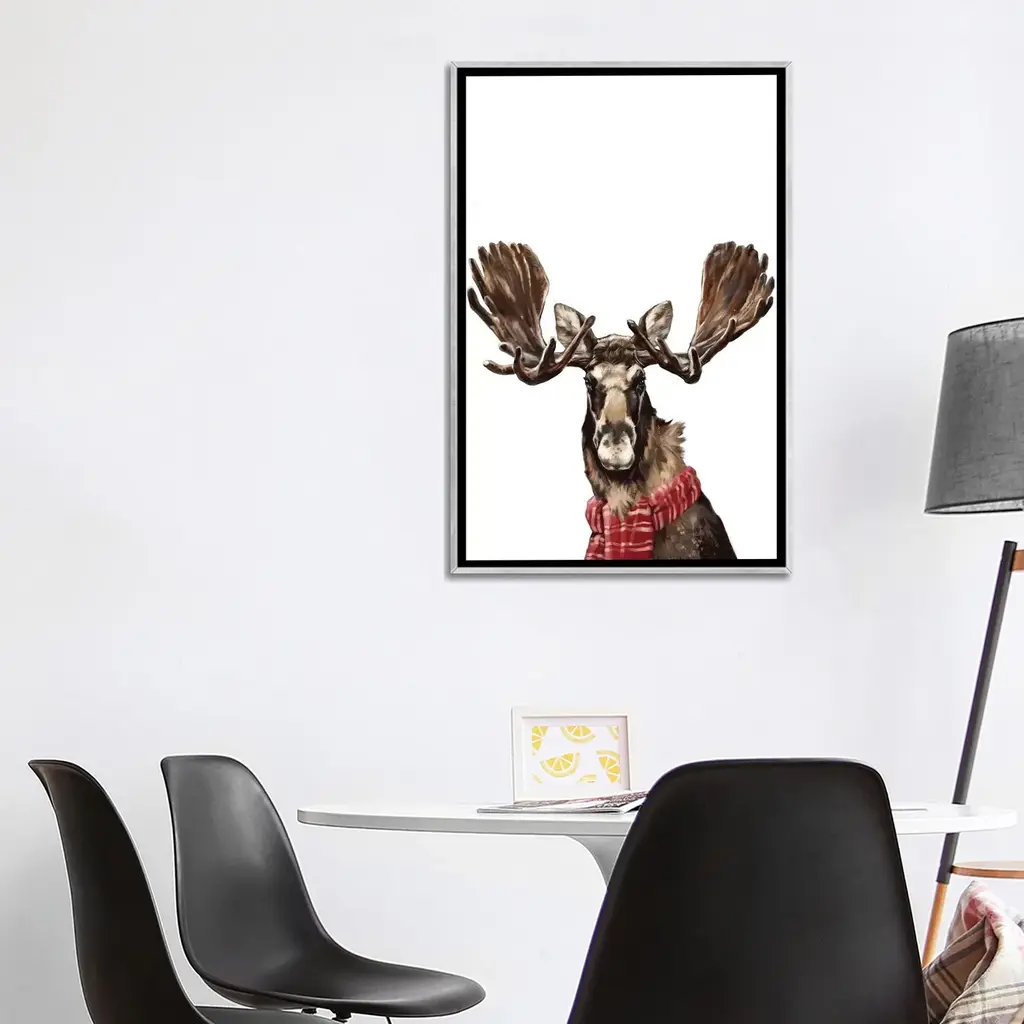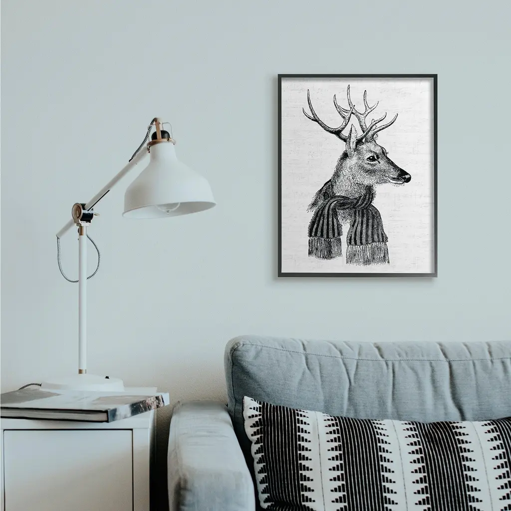Stupell Reindeer In Scarf Minimal Vintage Portrait Framed Wall Art - 24 X 30 - Black