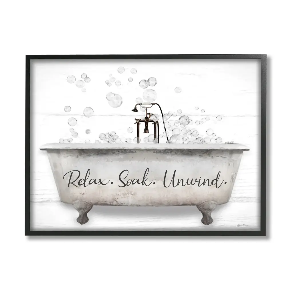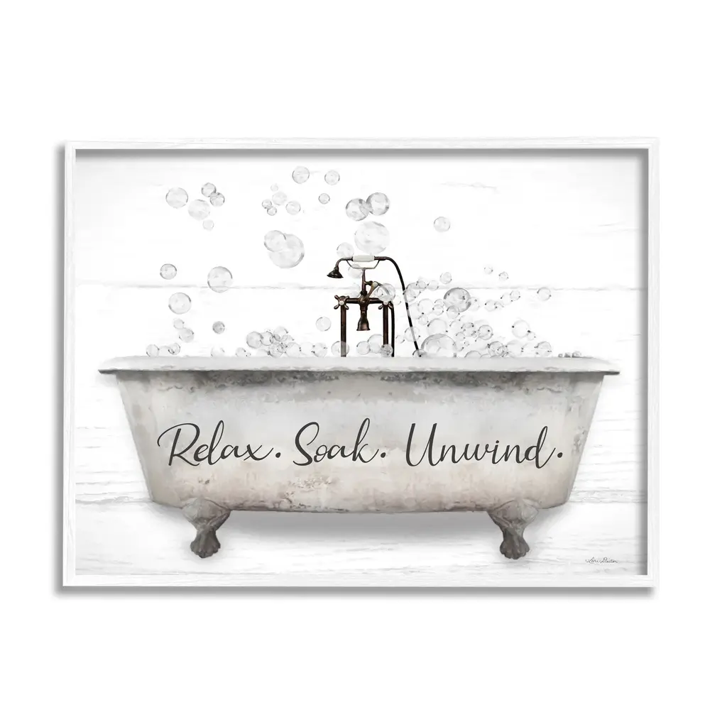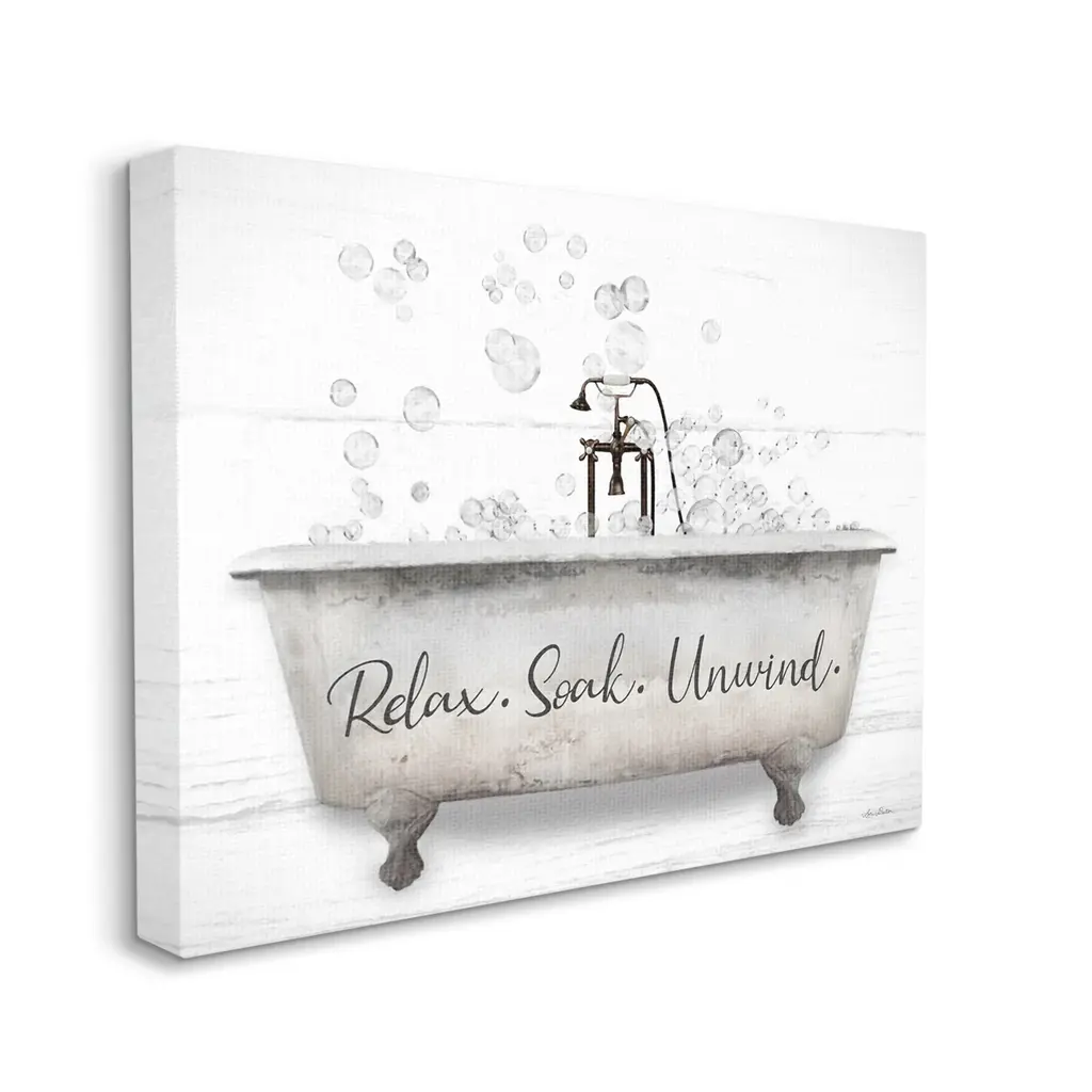 Stupell Relax Soak Unwind Bathtub Bubbles Canvas Wall Art By Lori Deiter - 30 X 24