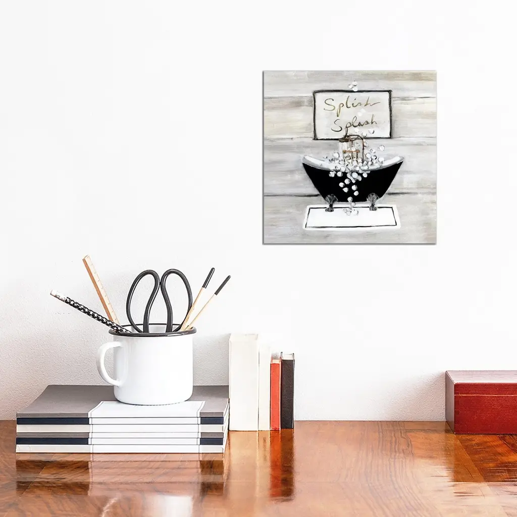 Proudly made in the USA, Our stretched canvas is created with the highest standards. We use only the highest quality inks and canvas on our in house Mimaki printers, and then hand cut and stretch each piece over a 1.5 inch thick wooden frame for hanging. The art comes ready to hang with no installation required. Room Type: Bathroom, Powder Room, Vanity, Rest Room or Wash Room.Features: Dimensions: 20 x 1.5 x 16 InchesStretched Canvas Sizes Include Standard: 20 x 1.5 x 16 Large: 30 x 1.5 x 20 X-Large: 40 x 1.5 x 30 Oversized: 48 x 1.5 x 36Wall Art is Ready to Hang - No Installation or Hardware Needed. For Easy Set Up Lean or Layer Artwork on Shelf or Against Wall.Our stretched canvas is created with the highest standards. We use only the highest quality inks and canvas on our in house Mimaki printers, and then hand cut and stretch each piece over a 1.5 inch thick wooden frame for hanging. Made In USA.Artwork Relates To: Tub, Bath, Bathtub, Bubbles, Bathroom, Relax, Soak, UnwindDesign by Lori Deiter
